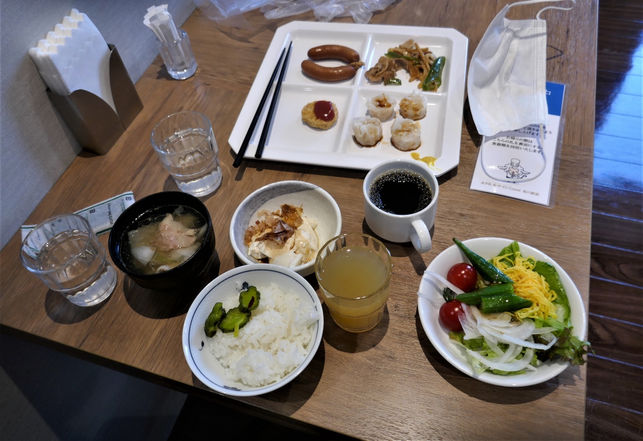 Grandとつくだけ,ルートインより若干高級かな.1泊9350円.この手のホテルとしては高めの設定.部屋はツインのシングルユースにしてくれた.割と広くてシテイホテルなもの大きさ.ベッドも広め.風呂はシテイホテルより若干狭いが,大浴場サウナ付きがあるので問題なし.サウナは85度前後でちょうどいい暑さだったが水風呂がないのが欠点.シャワーでの水では火照ってしまう.しかしサウナがないよりずっといい.朝食は食材の種類もあり,毎日多少おかずが違い,連泊でも飽きないように工夫されていた.ビジネスで連泊する人も多いだろう.