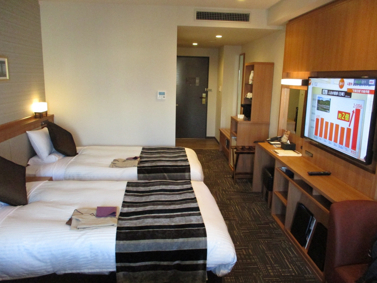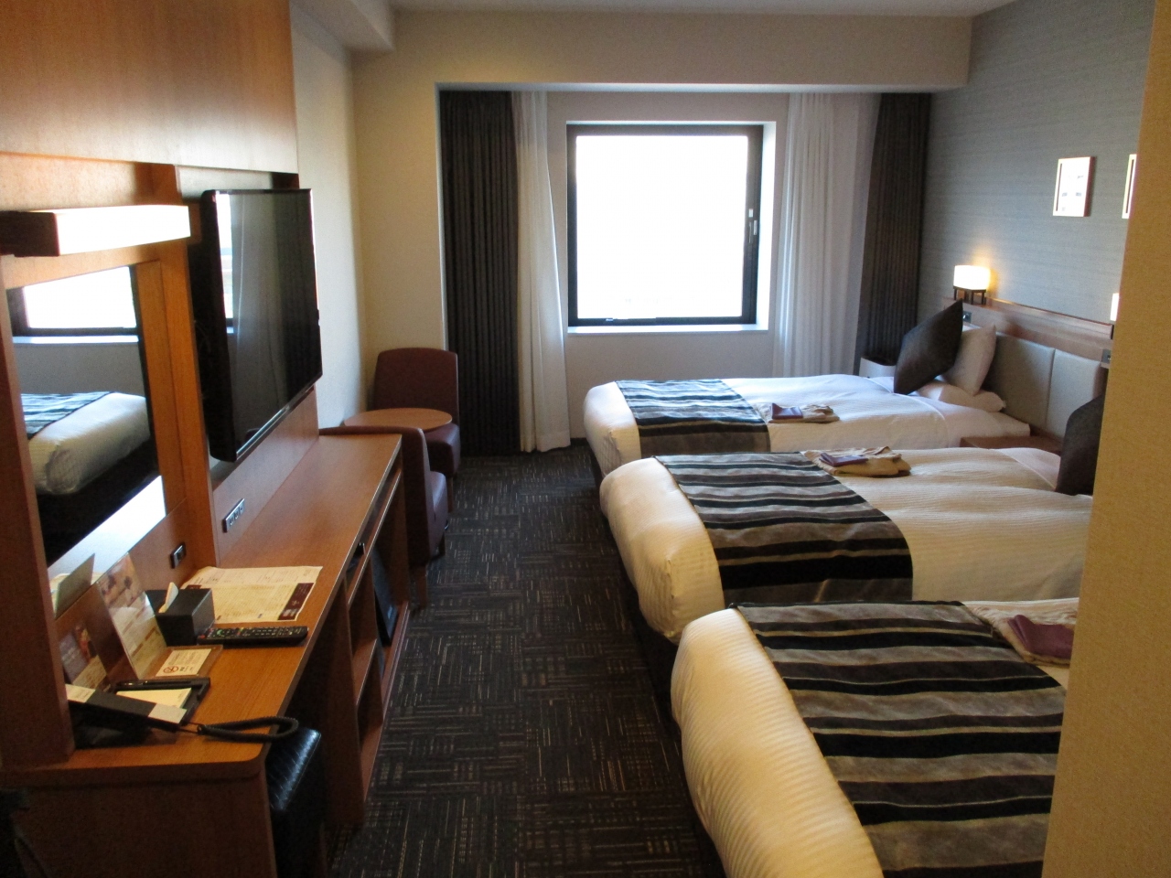 このホテルは函館でも大きな方です。建物が古かったことを除けばとても満足しました。とても快適で清潔で、スーペリア予約だったのですが、ベッドが3つ並んだ広いくらいの客室でした。ホテルは函館駅には近いですが、市電までは少し距離があります。徒歩で5分から10分といったところでしょうか。函館にはたくさんホテルがありますがいい選択だったと思います。
