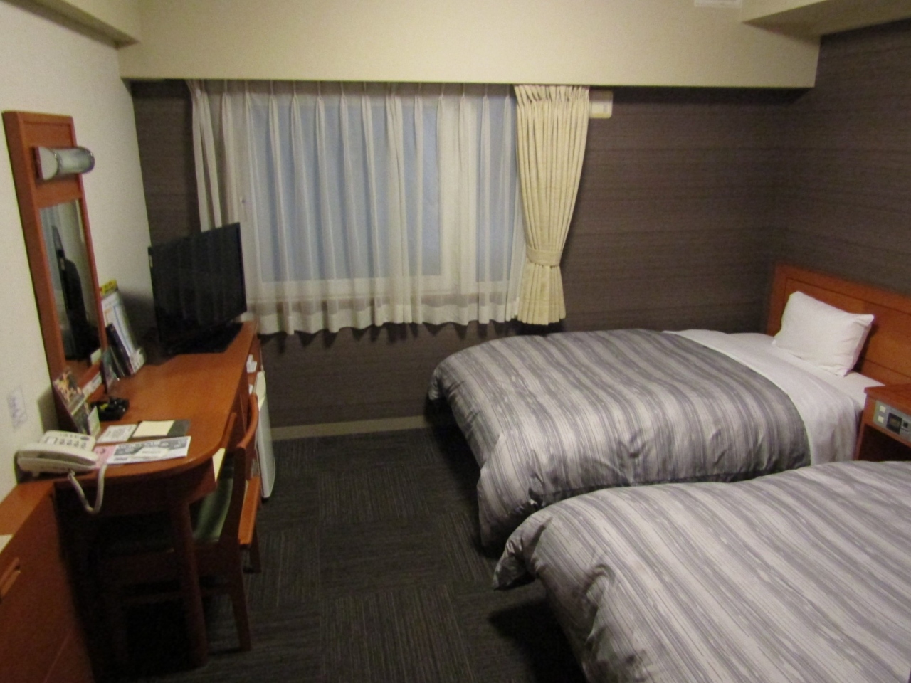 部屋はアパなどのビジネスホテルに比べてやや広く、ズボンプレッサーと空気清浄機が各部屋に配置され、無料のコーヒーサーバーがあり、朝食も種類が多くて大浴場があるなどが良い点と思います。