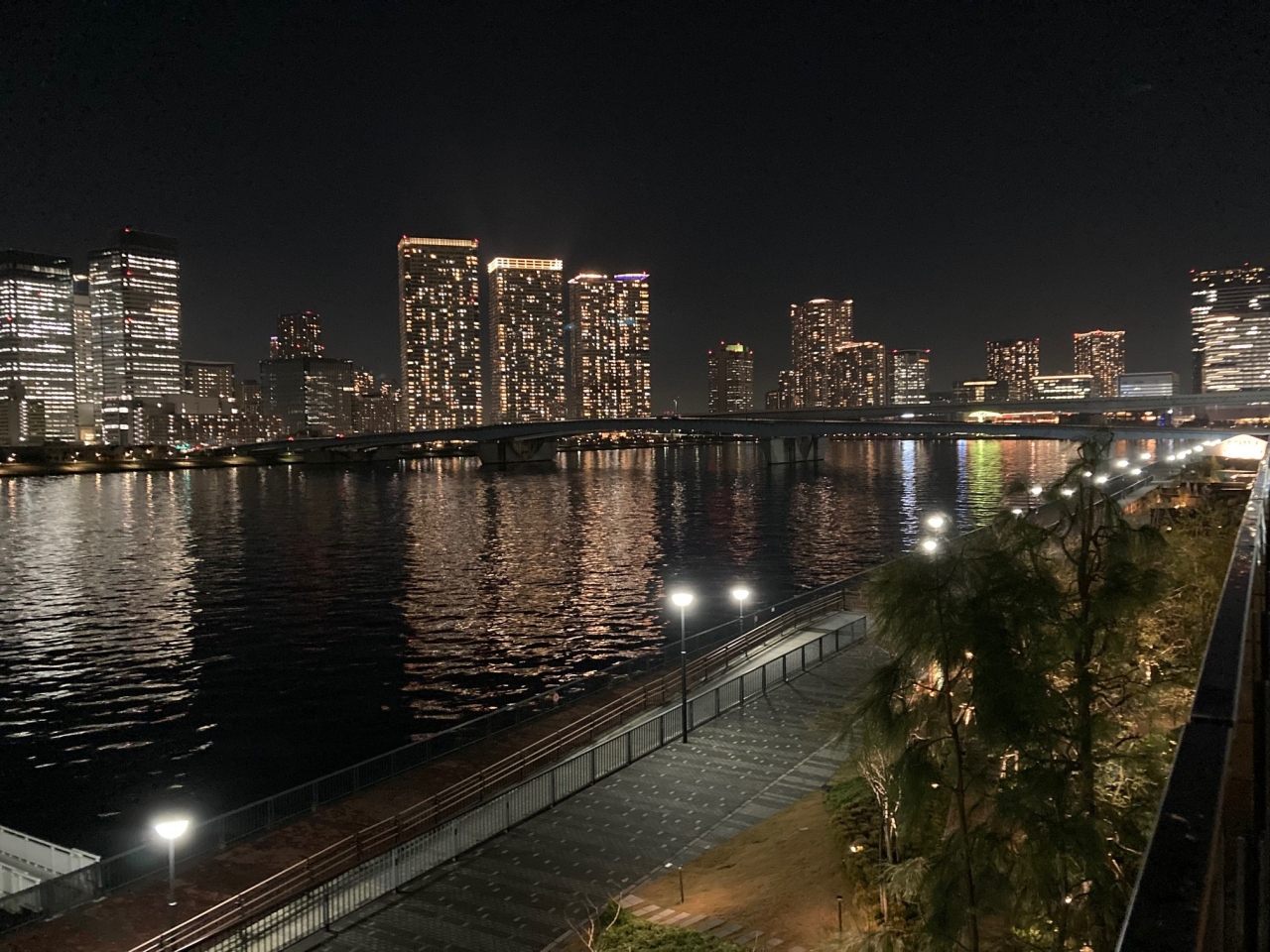ゆりかもめ「市場前駅」直結の利便性抜群、最上階眺望温泉大浴場と露天風呂から眺めるビル群の夜景は最高のロケーション。全国旅行支援を使っての来客は多く、フロントでのチェックインには少々時間を要しました。