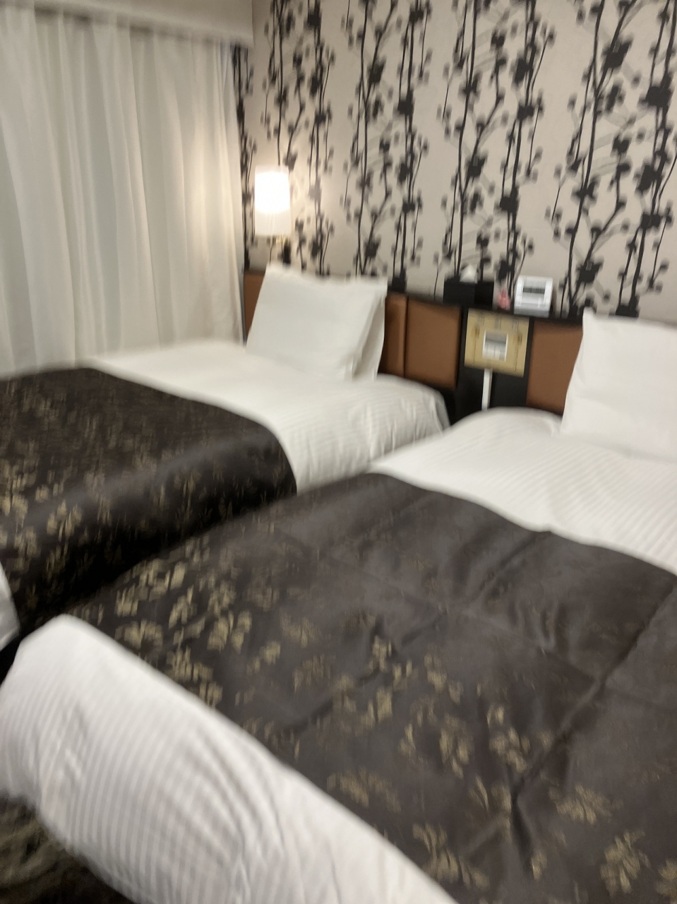 スタンダードツインの部屋は狭い上、セミダブルが2台入っているので歩くのにも窮屈です。ただベッドに入ってしまえばまあまあ落ち着けます。