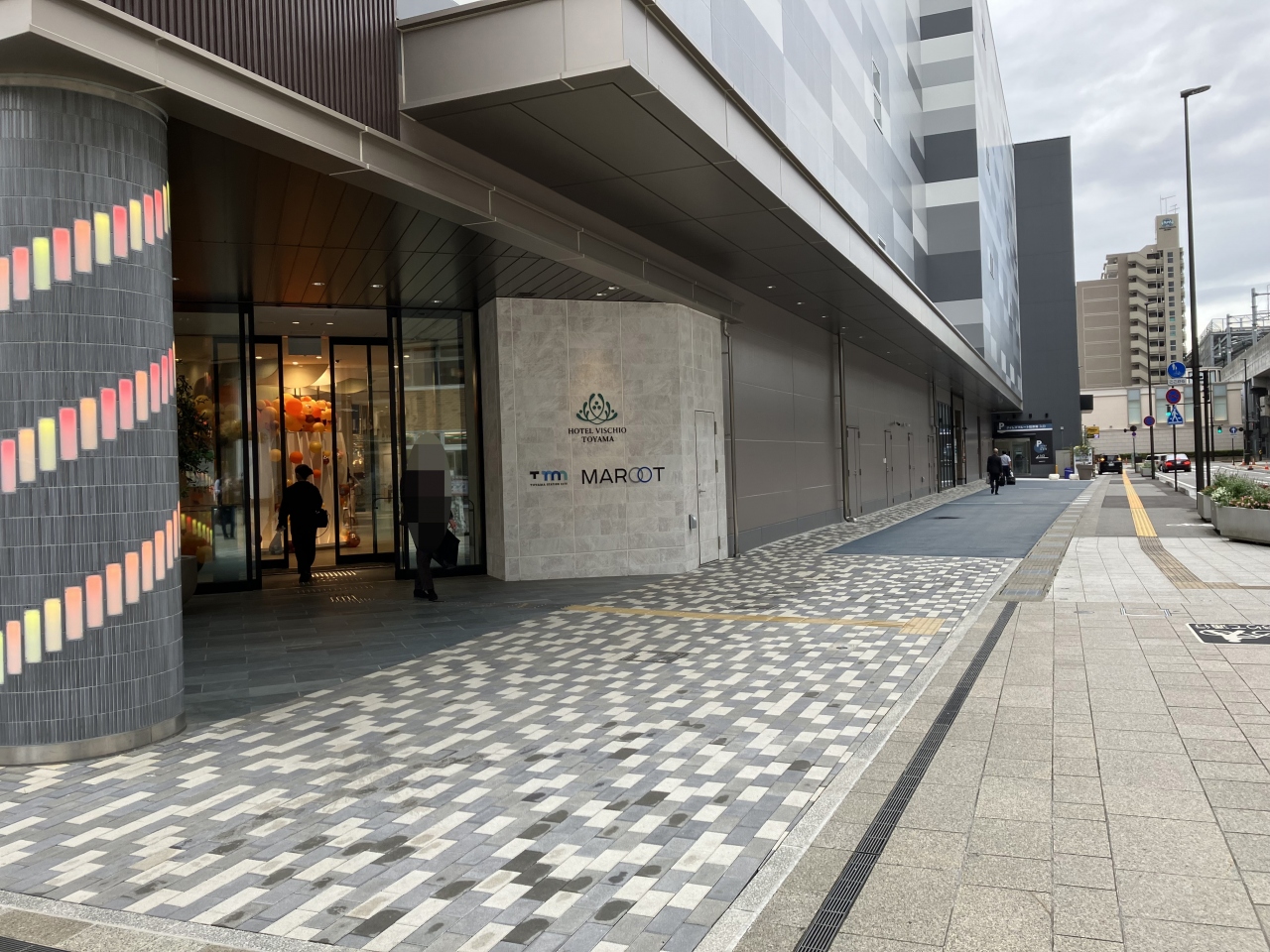 富山駅のすぐ目の前、新しくできた商業施設マルートの5階以上にあるホテル。フロントまではマルートのエレベーターを使うけど、客室階に行くためのエレベーターに乗る手前でカードキーが無ければ開かない扉があって、セキュリティはしっかり。マルートの閉店後は、同じように部屋のカードキーで出入りできるようだった。
