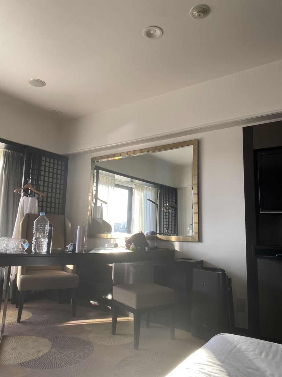 ご年配の方やビジネスウーマンが喜びそうなホテルです。ビジネステーブルあり、お風呂のお湯は大量に出るのですぐに湯船にたまります。シャワーもすぐお湯になるのが嬉しい。広さもあり非常に満足の高いお部屋です。御所に近いため朝のお散歩も気持ち良い。