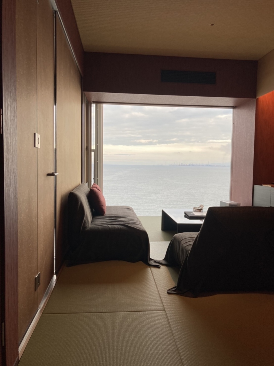 部屋からは別府湾が眺められて景色最高で、のんびりできました。露天風呂も気持ちよかったです。大浴場にも行きました。夕食と朝食は和食で、美味しくいただきました。館内では屋台や桶の演奏があり、子供も飽きることなく楽しかったです。