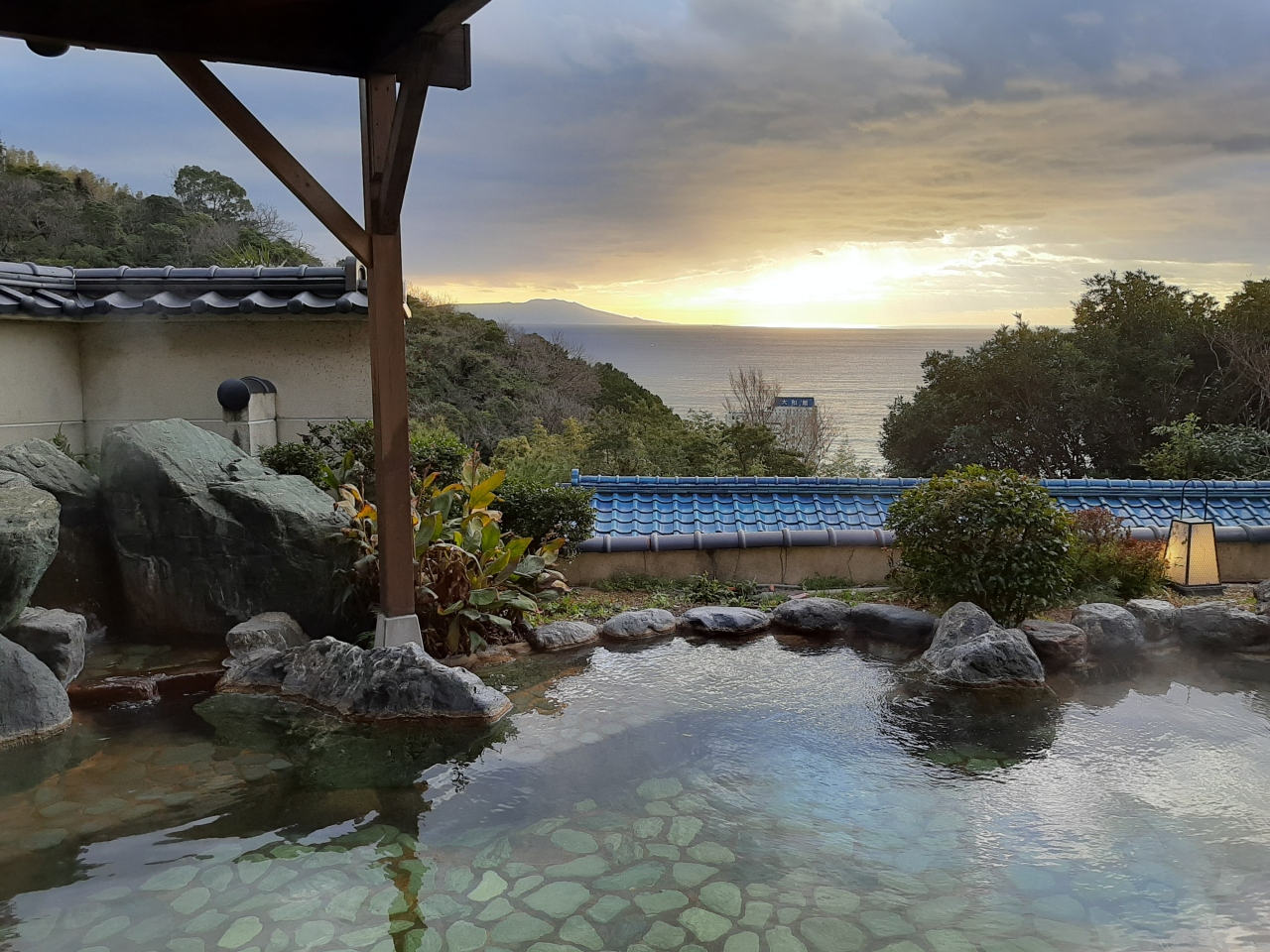 共用の大浴場は、熱川温泉やその先の伊豆大島などまで見渡せる屋上の露天風呂など数多く、基本見晴らしがよいです。
