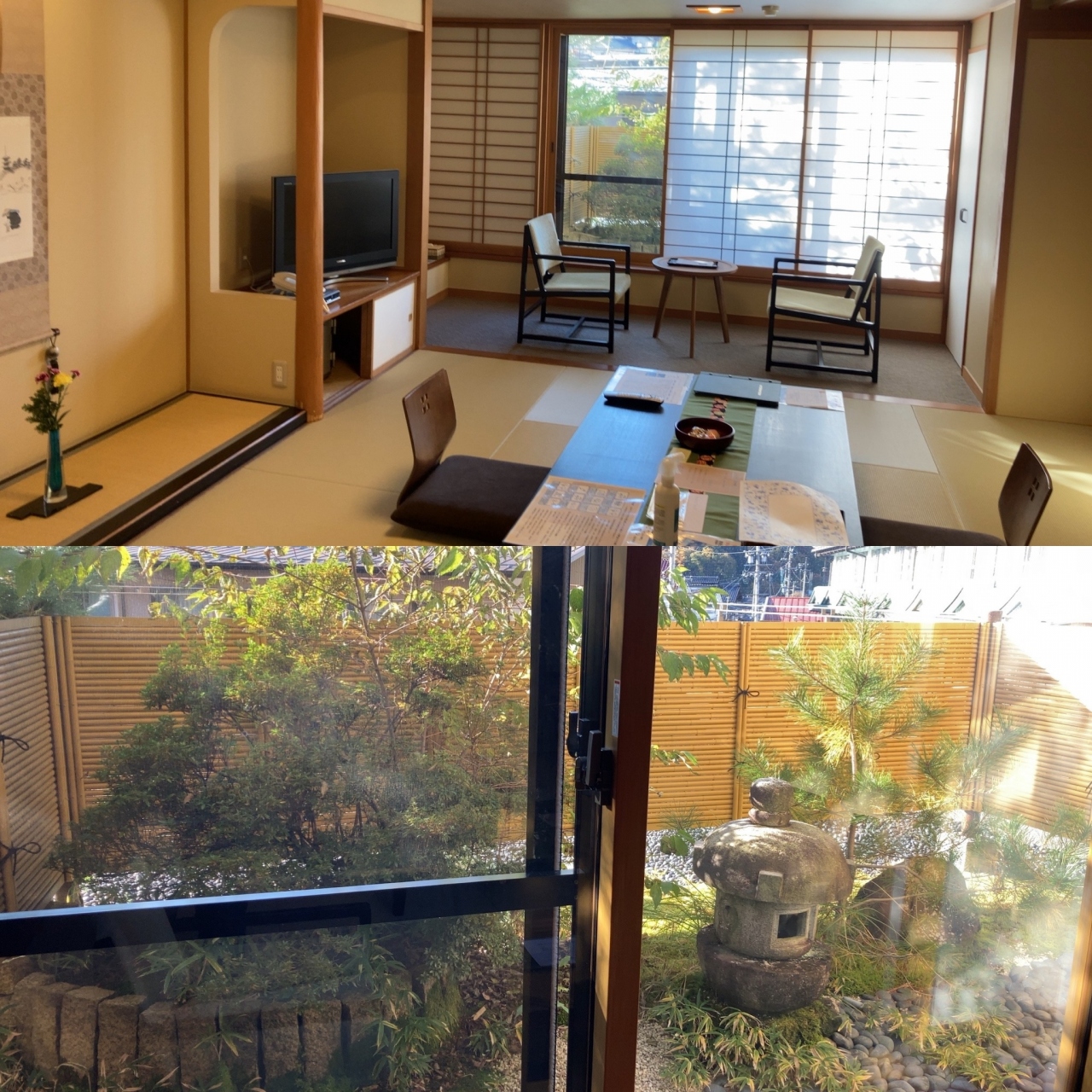紅葉の季節に、温泉で癒やしを求めて訪れたのが「別所温泉 玉屋旅館」。今回は、平日ということもあり、ゆったりと旅館で過ごすことができました。また、宿泊者には、外湯のチケットが配られ、そのチケットで翌朝の露天風呂もある、玉屋旅館の目の前にある「大湯」でも湯を楽しむことができました。旅館の温泉は、露天風呂で平日ということもあり、「独泉」でまったりとできました。食事は、部屋食(といっても、隣の部屋ですが)で、自分たちの空間で食事を堪能できました。3Fの部屋で、窓からは、ちょっとした「小庭?」も眺めることもできました。