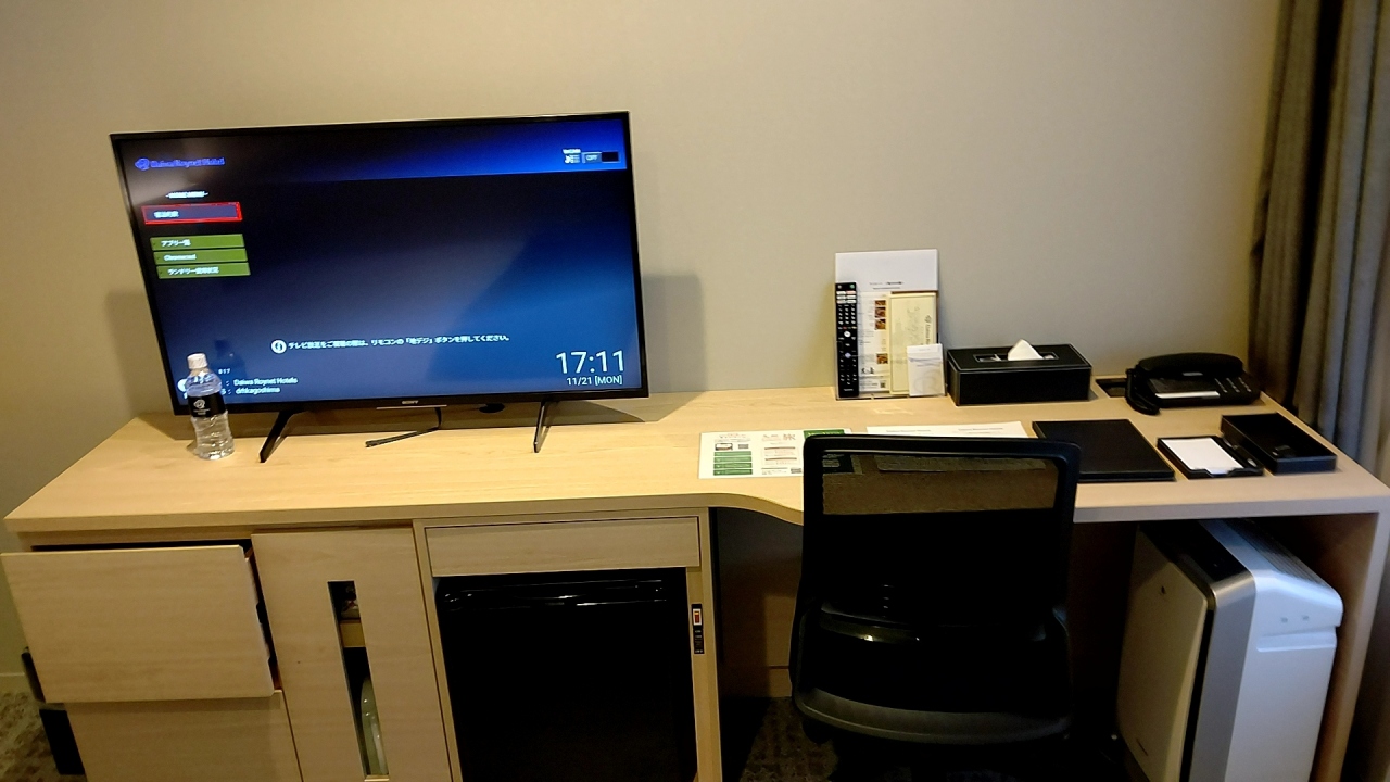 テーブル、椅子もあり、窓も開き、空気清浄機もありました。トイレと洗面台は同じ仕切り内、バスルームは割と広めでガラスドアで仕切られているのが良かったです。