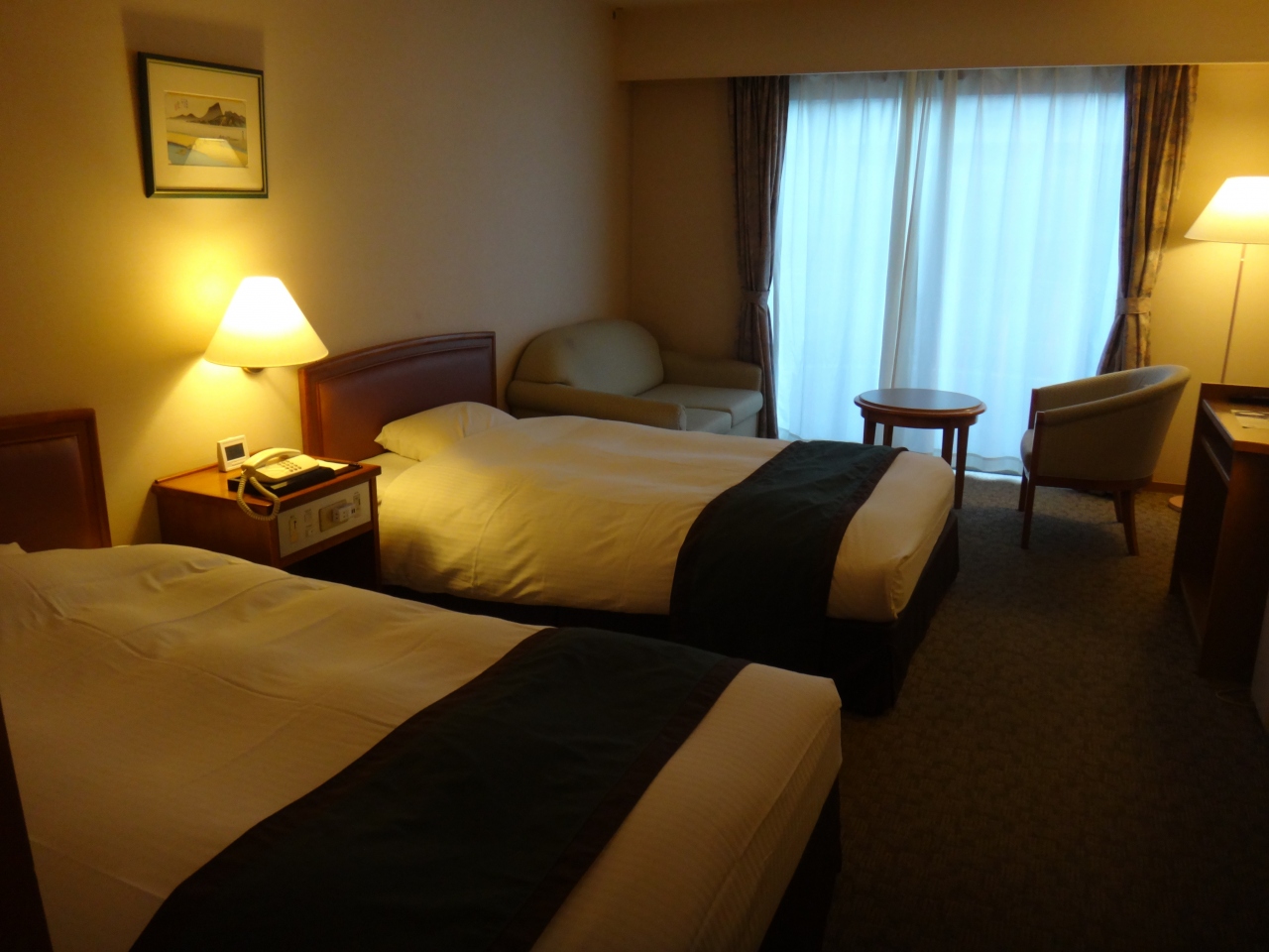 - 部屋タイプ:ベッドはセミダブルのツインルーム 広さ 23.7㎡、エントランスビュー