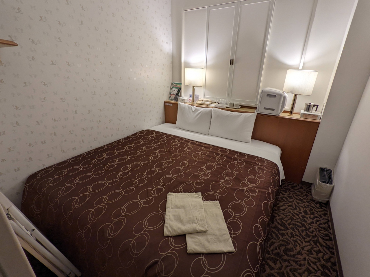 浦安駅近くのビジネスホテル。昭和的な年季の入ったホテルだが、1Fの客室で移動が楽ちんで良かった。部屋はちょい手狭だが許容できる範囲。なにより朝は無料で菓子パンやおにぎり、野菜ジュースが提供されていて良かった。全国旅行支援で東京のホテルが高いので千葉にとまるのも良い。