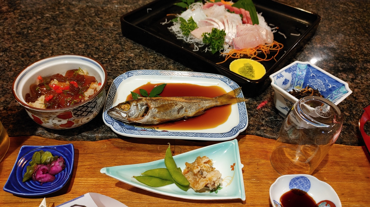 「グルメイン」と銘打つだけあって、地魚、伊勢海老が凝った調理法で出されてしかも量があり大満足。(妻は多過ぎておなかが痛くなっていたが)大浴場(夜と朝で男⇔女湯をチェンジ)の片方の「真珠の湯」はユニークな形の浴槽で一見の価値ありです。