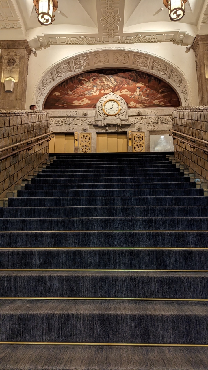 一覧を見る青い絨毯の大階段は、若い女性に人気のようです