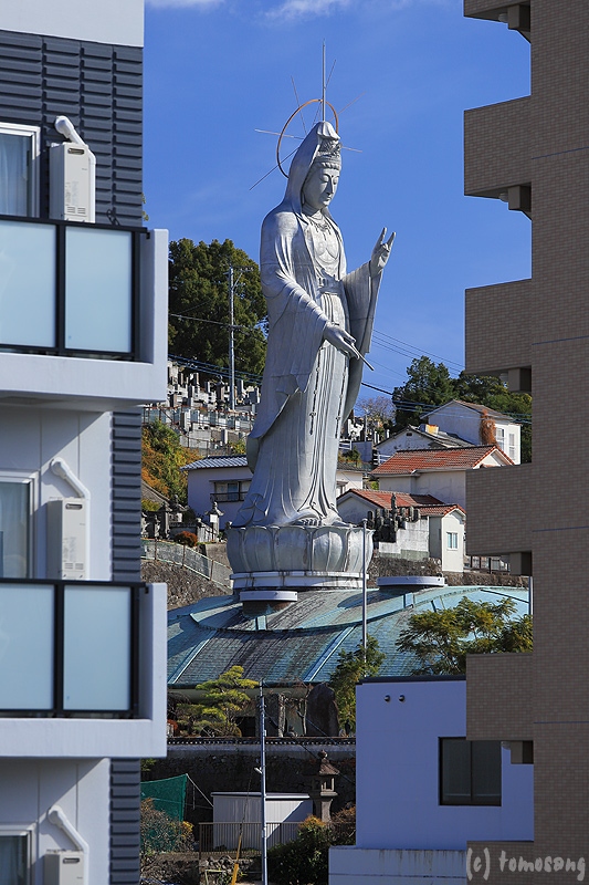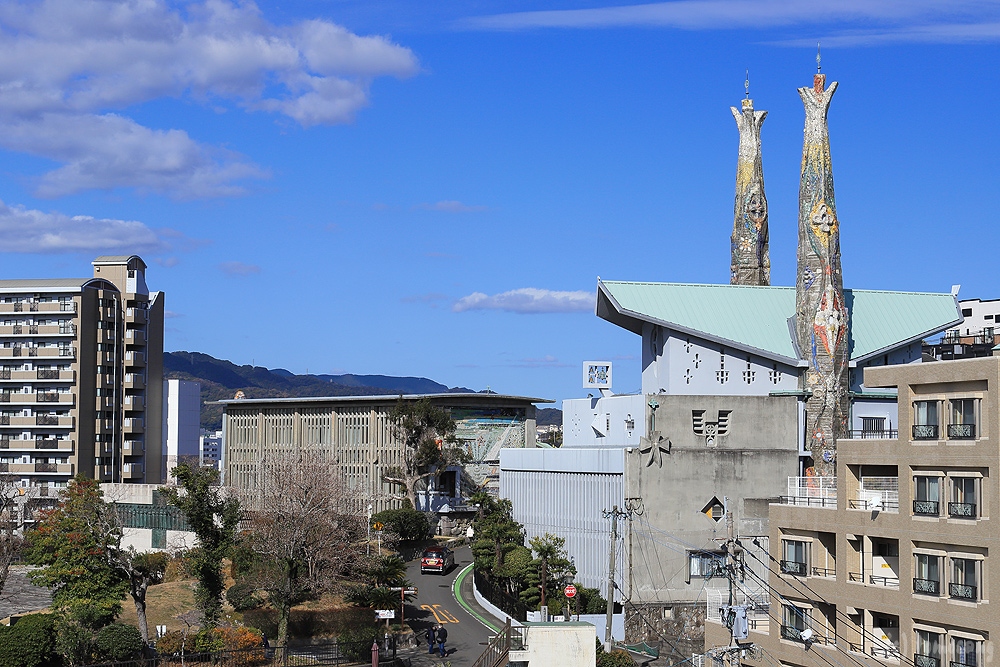 喫煙所となっている非常階段へ出ると斜面地の光景が凄かった。