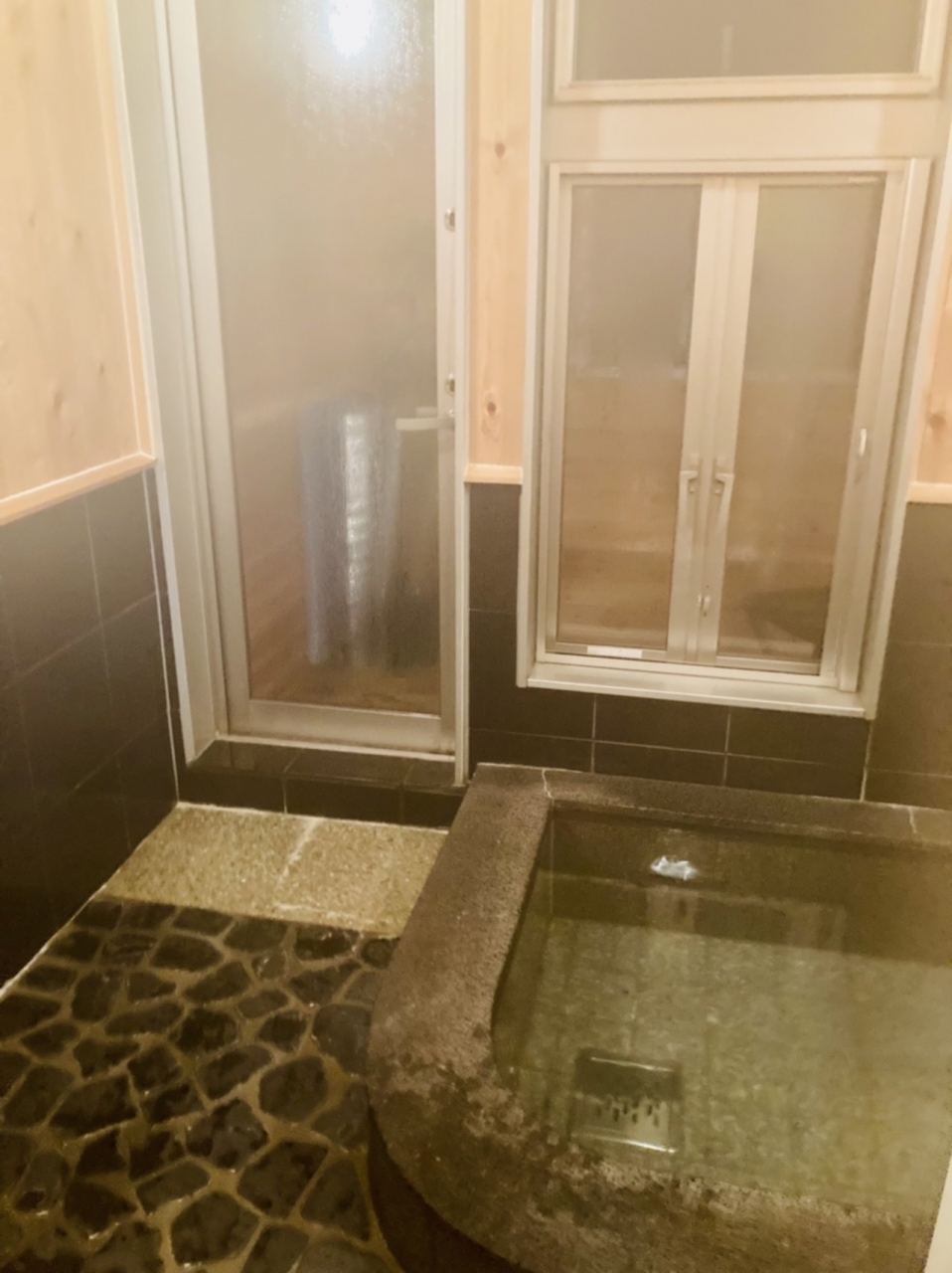 貸切風呂が2つあり、予約した時間に入れる。半露店っぽい感じで窓を開けると気持ちいい。近くにホテルがあり湖畔の景色を望めないのは残念だが、それでもいい感じ。