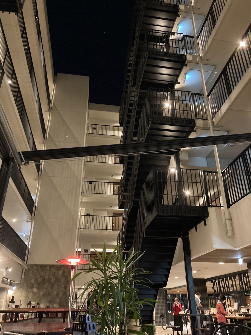 京都駅八条口から徒歩でアクセスできるのがまず良い。ロビーは開放感があり、ロの字に吹き抜けになっているスタイルは、まるで海外の南国リゾートホテルのよう。焚火のような火を囲んでウェルカムドリンクをいただける。コーヒーや紅茶などのフリードリンクサービスも嬉しい。併設のレストランもリーズナブルで美味しい。夕方にはミュージック演奏もあって雰囲気がいい。大浴場、マッサージチェア、半纏の貸出し等々、他にもさまざまなサービスが盛りだくさん。こんなにコスパのいいホテルは他にない。