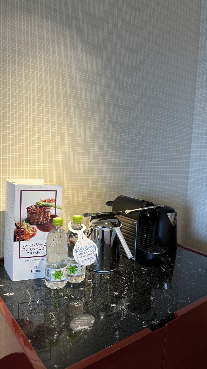 すっかり高嶺の花になりつつあるヒルトンホテル。ここは場所がよい、部屋もそこそこいい、チェックアウト時間を遅くまでしてくれる、ルームサービス24時間対応ともろ私の好み。なので、ちょくちょく泊まります。大阪駅前、地下道、地下鉄直結と交通の便もいいのですが、伊丹空港リムジンまで裏手にあるのです。関空リムジンは少し歩きますが、非常に便利。朝食開始もそこそこ早いので空港に行く時にも前泊にも使い勝手がいいホテルです。でも、お水がいろはすなのはちょっと興ざめします…