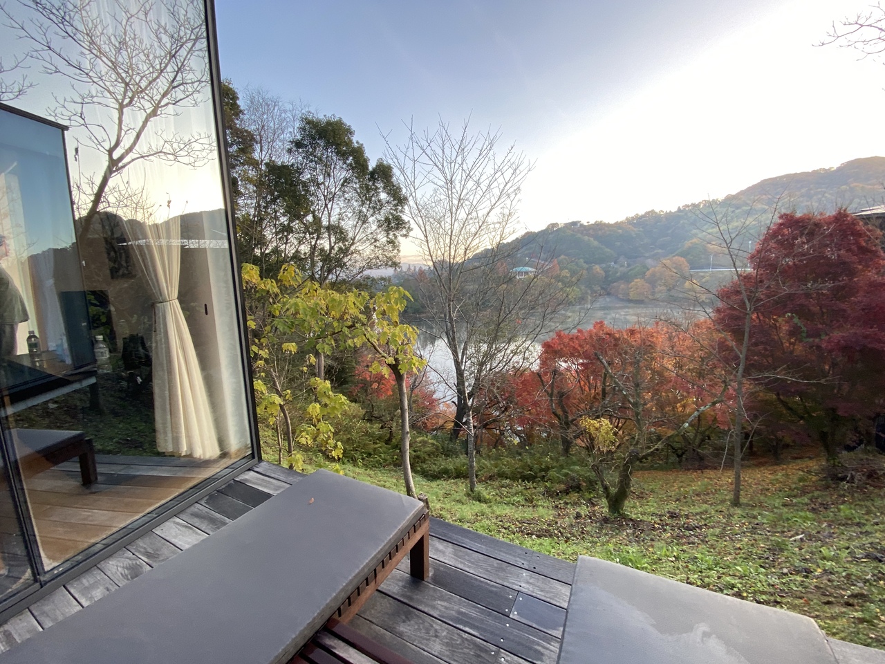 目の前の池と紅葉をいつまでも眺めていられ、癒された。