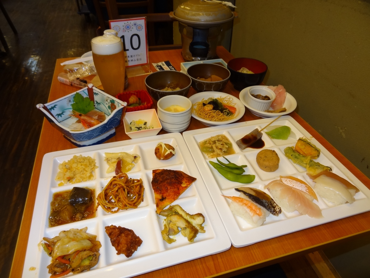 プラン料理がつかない2食付スタンダードプランだと8,415円~と格安で、郷土料理や会席料理と言うわけにはいきませんが、この値段で温泉に入って食べ飲み放題!は、細かいことを気にしなければ満足です。