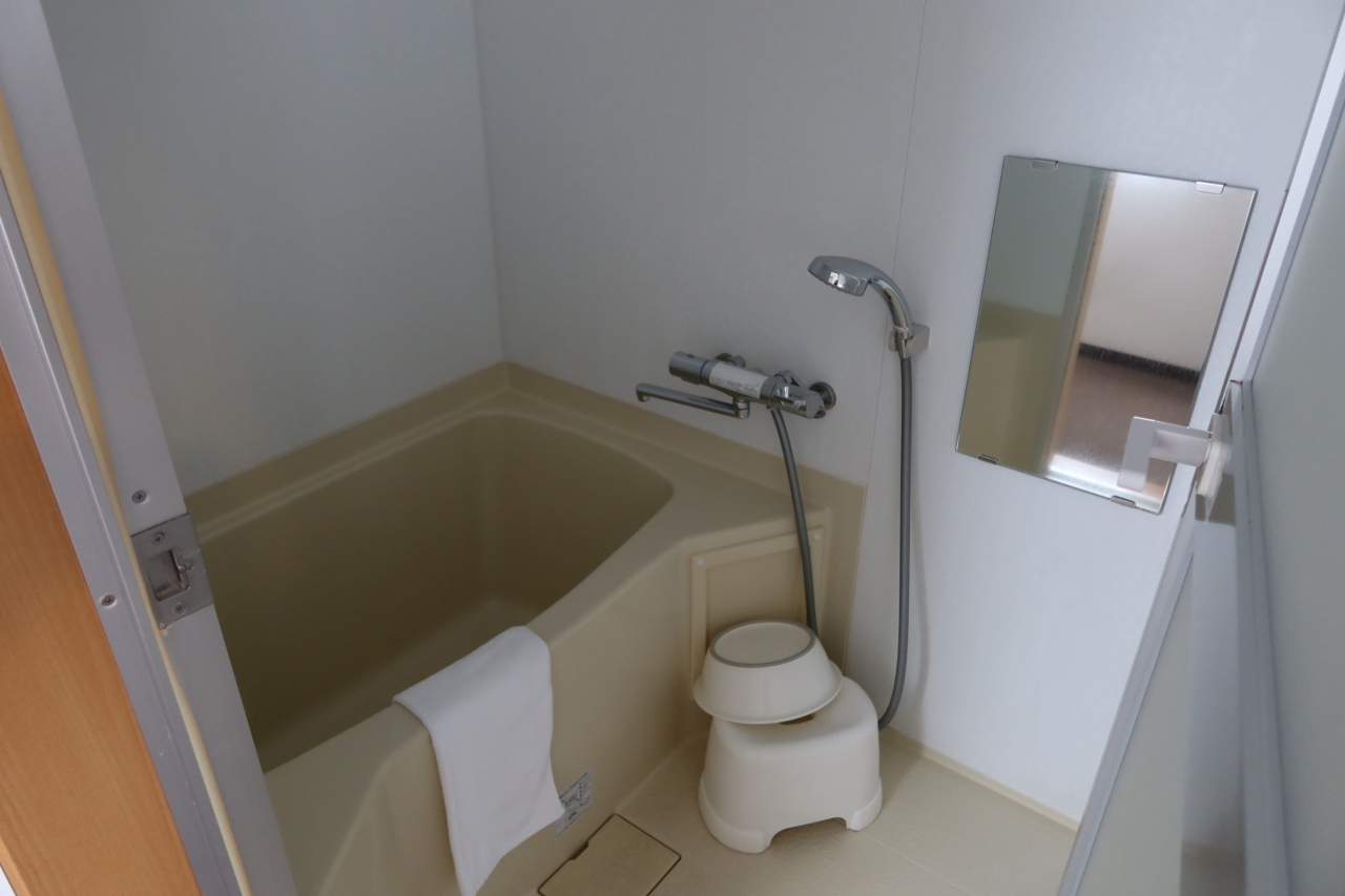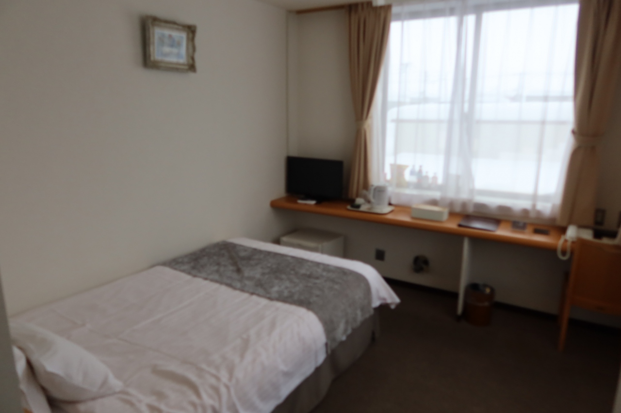 1、シングルルームなのに広く快適。バス、トイレ、洗面台がセパレート。荷物置き台(大)があり、窓部分にも荷物が置けていいね!