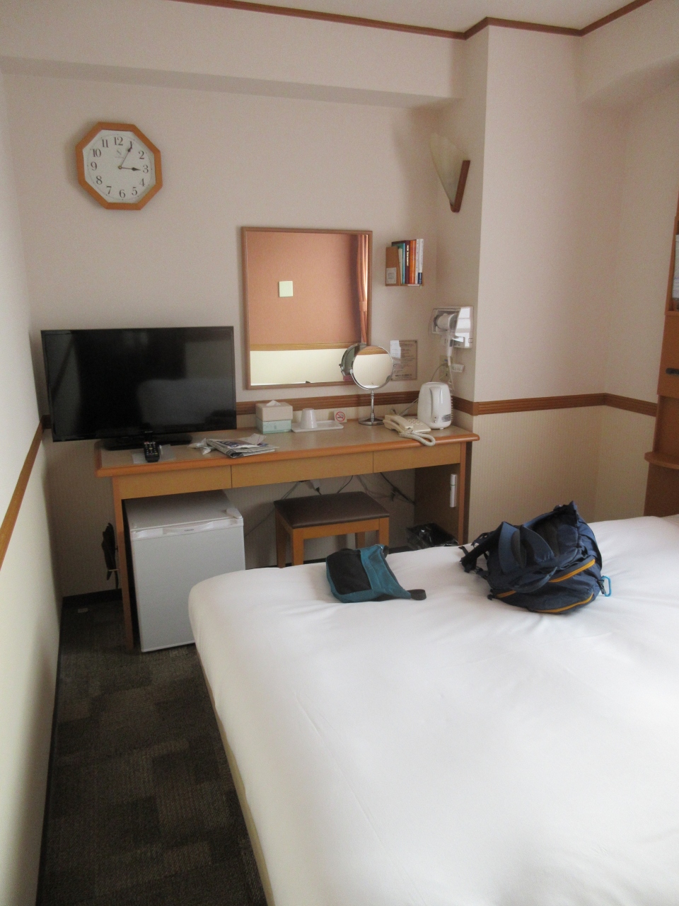 部屋は非常にコンパクトで、スーツケース広げる場所もありません。