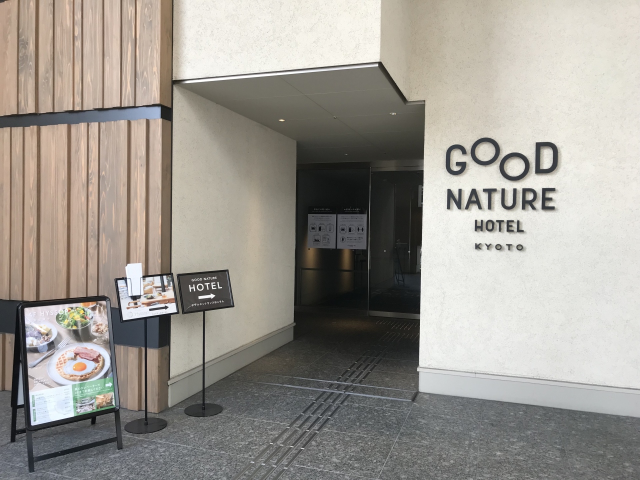 GOOD NATURE HOTEL KYOTOは、阪急電車 京都河原町駅から徒歩約2分の場所にあります。京都・河原町という繁華街にありながら、ホテル館内にはアロマの香りが漂っていました。静かな時が流れる癒しの空間という雰囲気でした。このホテルはSDGsを意識していて、無駄な使い捨て用品は置かず、給水用の水筒なども置かれていました。部屋は清潔感があって綺麗で快適に過ごせました。窓の眺めがないのだけがちょっとだけ残念でした。