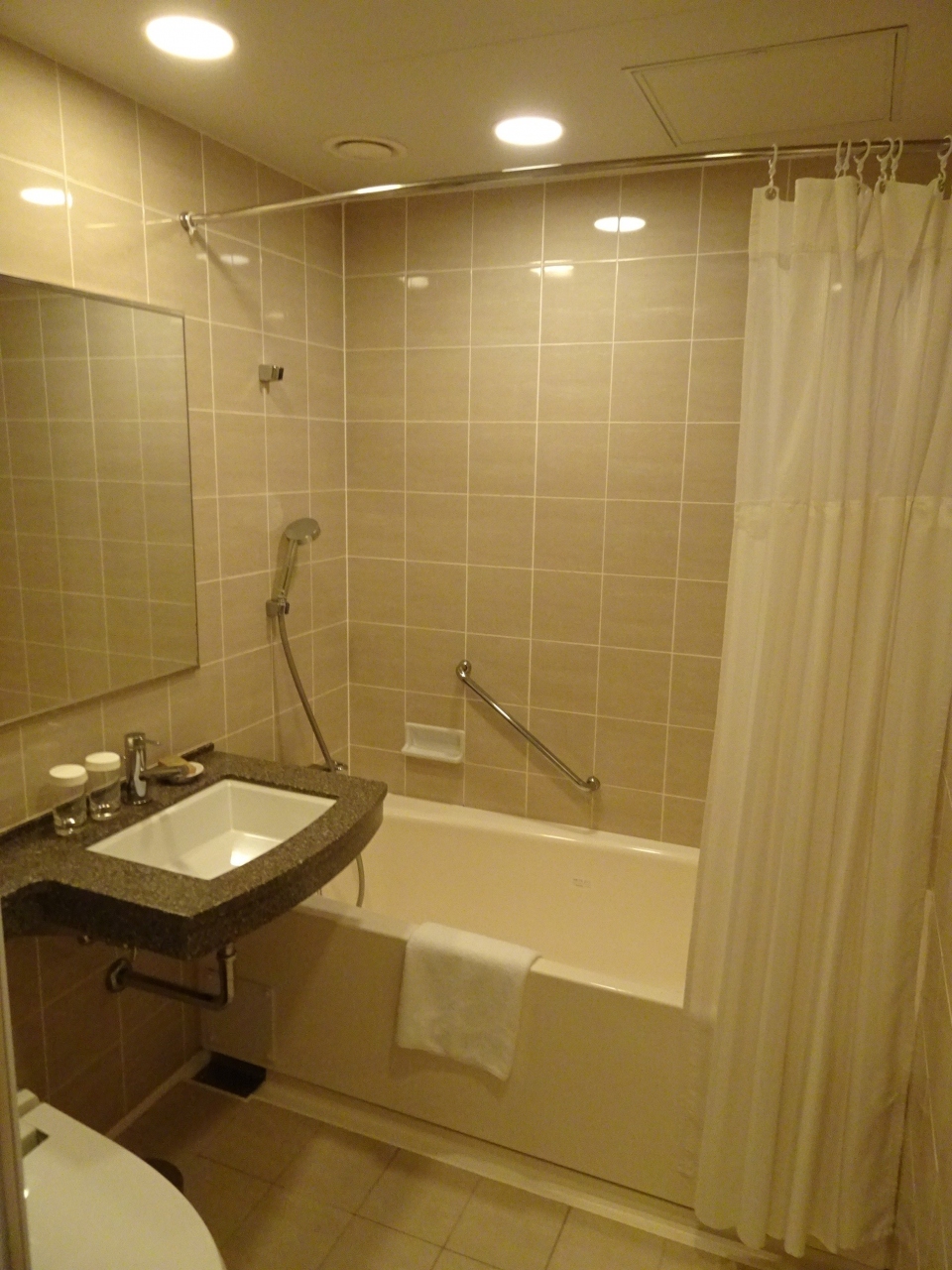 ゆいレールの旭橋駅のすぐ前にあり、バスターミナルにも近く立地がいいのが最大の利点。また通常のヒルトンアメックスカードを持っているだけでゴールド会員になれ、無料朝食や部屋のアップグレードを受けられるのも大きな利点。去年まで受けられたウェルカムドリンクは今回ありませんでした(ゴールド会員の通常サービスに戻っただけ)。