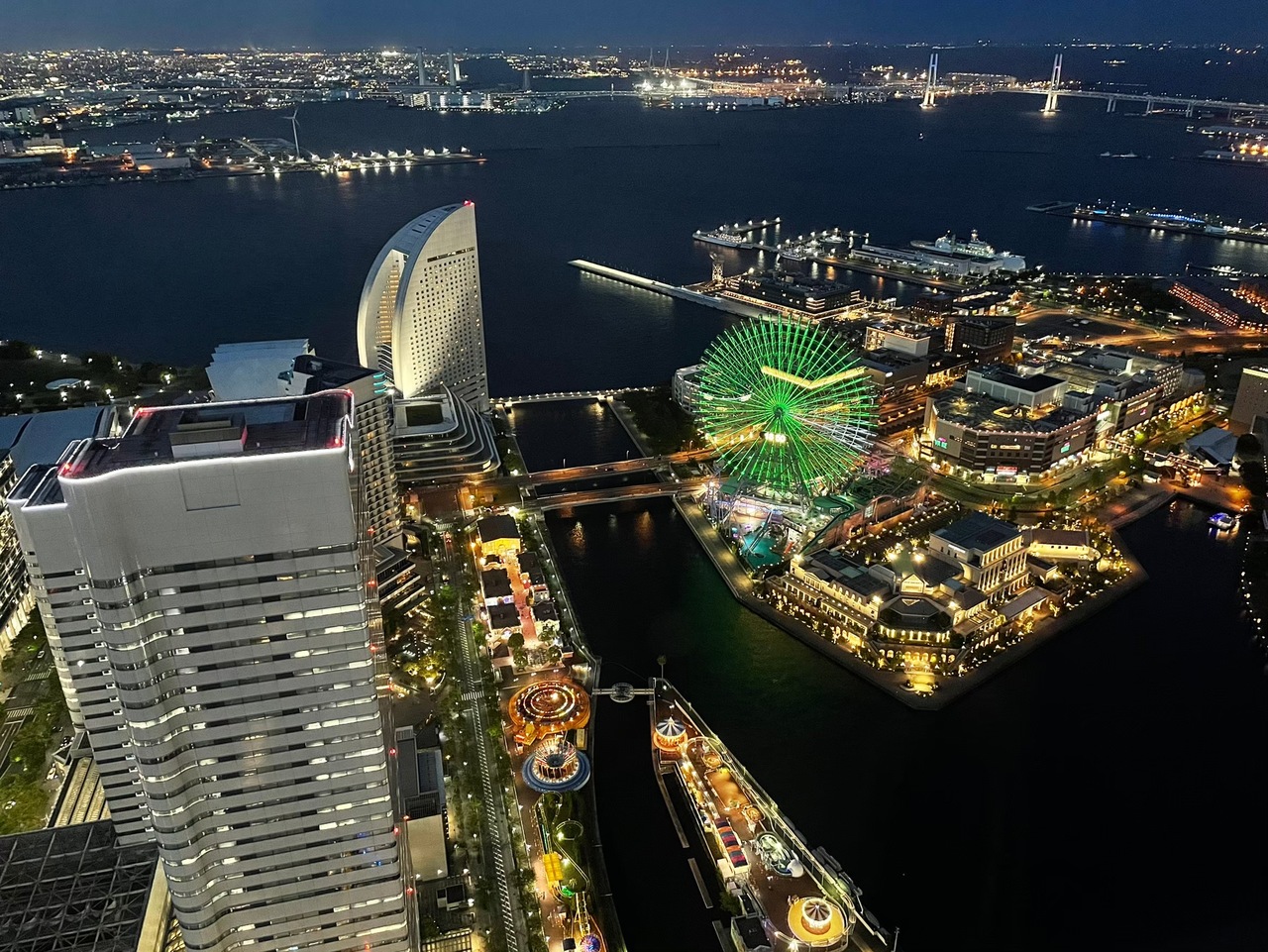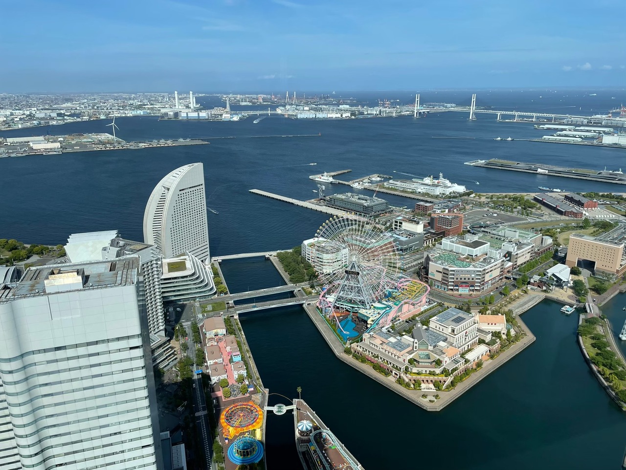 みなとみらいのランドマークタワー、上の部分がホテルになっているのでどのお部屋からでも高層階からの景色が楽しめます。