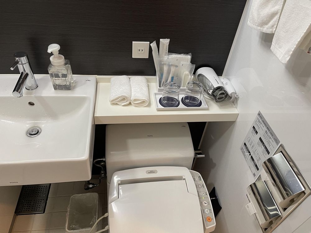 洗面は広めで綺麗、かつ快適、ドライヤーは通常のものが備えられています。歯ブラシ、櫛、かみそりなど一通りのものがあり、困ることはありませんでした。