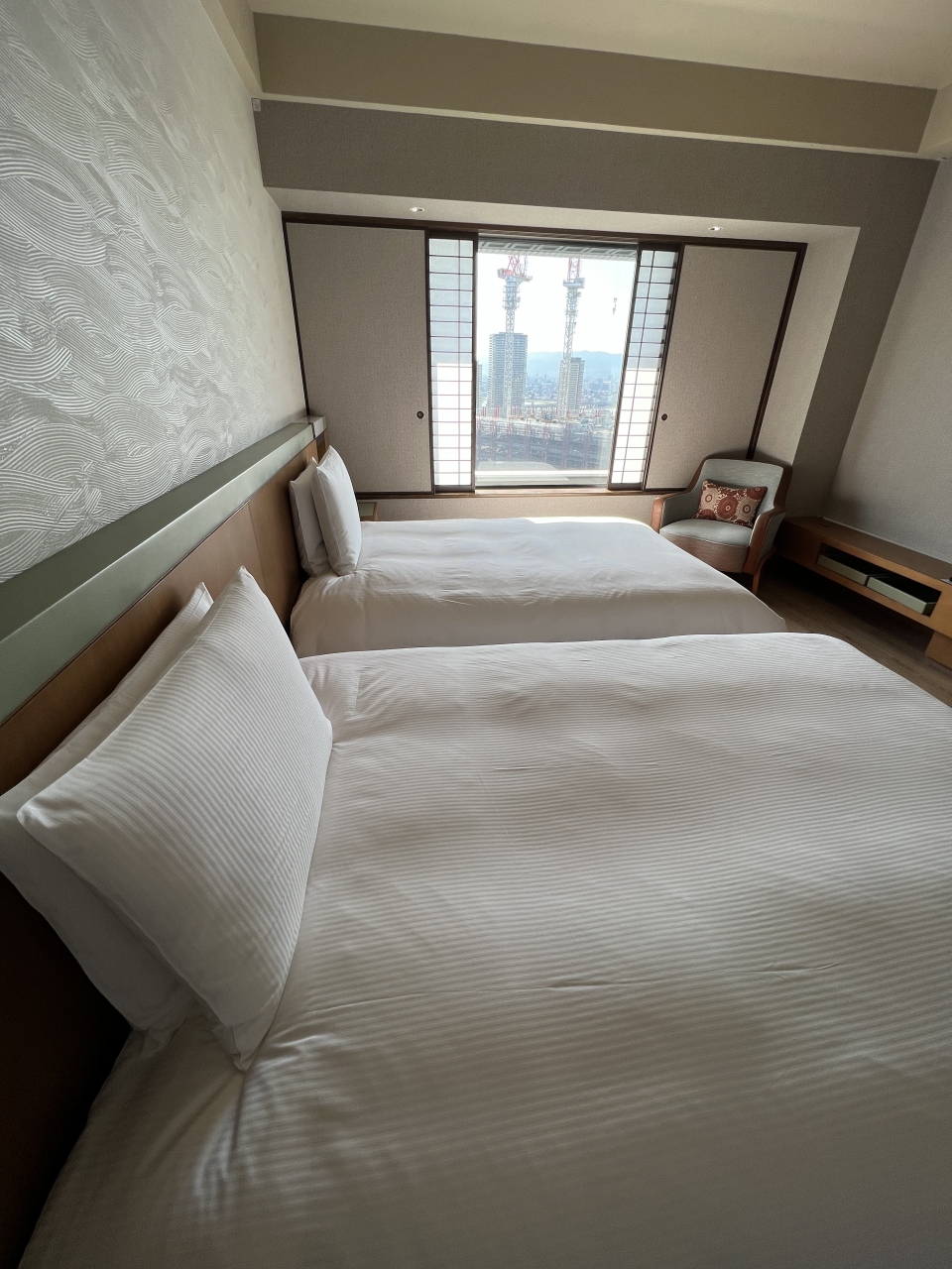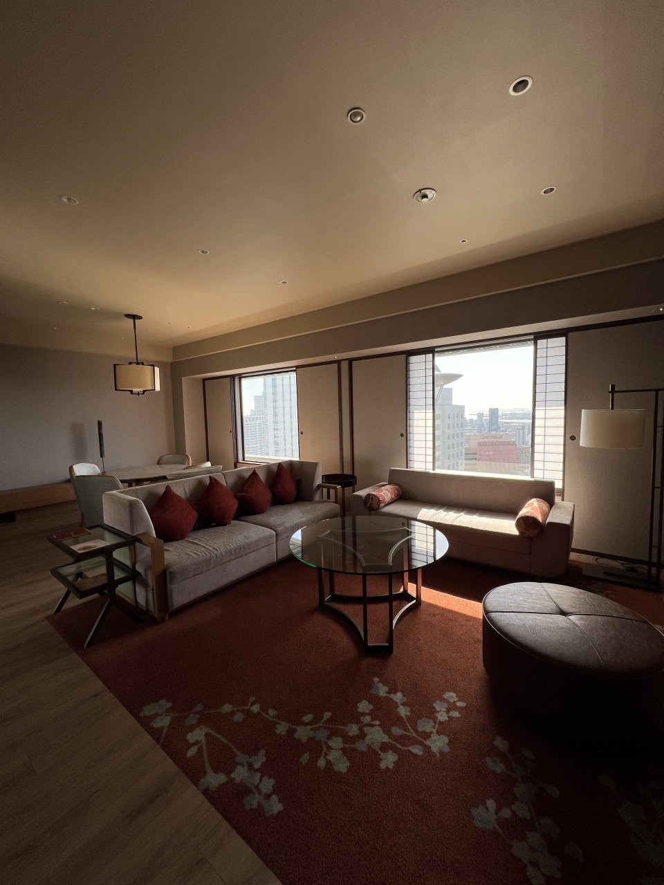 大阪にも多くのホテルがありますが、常連に優しいのはどこか?と言われるとわたしは大阪だとヒルトンだと思います。正直、ハードだけ見たらもっといいホテルはたくさんありますが、立地条件、値段、ダイヤモンド会員に対するサービスを総合するとヒルトンに軍配があがります。(わたしはハイアットが一番使うチェーンではありますが、大阪のハイアットは場所が悪すぎる)大阪ヒルトンは駅前立地ですが、客室は使いやすく、Wi-Fiも早い、デスクもあると。今回は無償でスイートまでご案内でした。ヒルトンはこのランクのホテルでは、合理化をかなり進めているホテルで、ミネラルウォーターを含めたアメニティの共通化(大阪も東京も平部屋でもスイートでも同じものです。)、また、大阪では相当の荷物がない限りドアマンも荷物を持たない上に、客室への案内も省略していますが、これだけ払ってるのに!と怒らずにその手のことを許せる人向けのホテルでもあります。