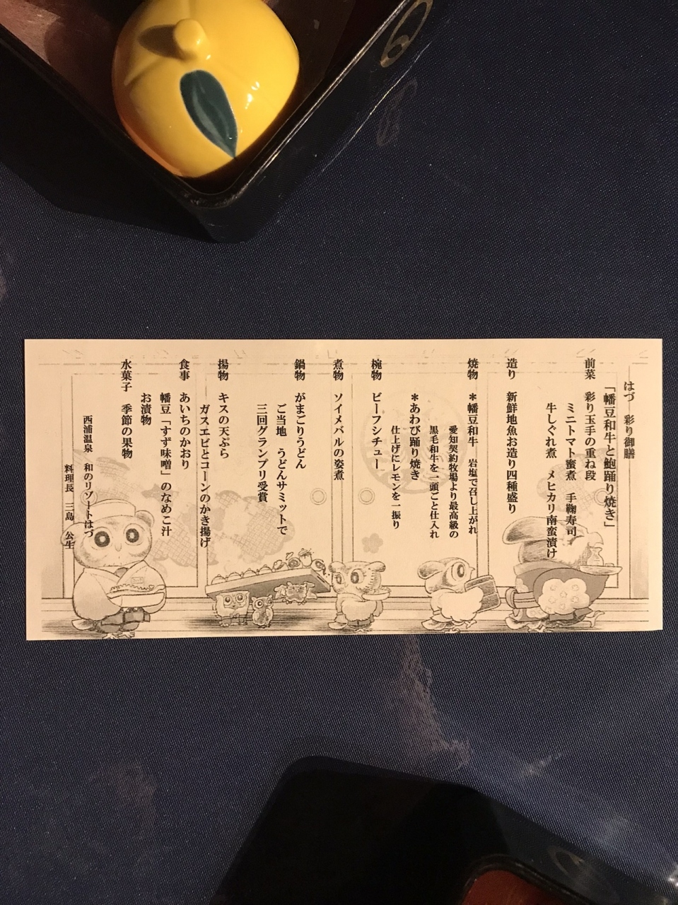夕食は懐石コース+鮑の踊り焼き+A5ランク牛で味は美味しく甘すぎずしょっぱい過ぎずです。
