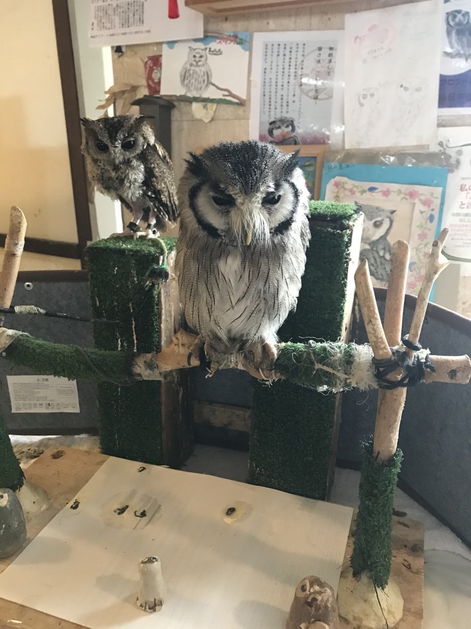 エントランスではチェックイン手続きを行い、その後全国旅行支援の手続きを行いました。フクロウ君がお出迎えしてくれます。