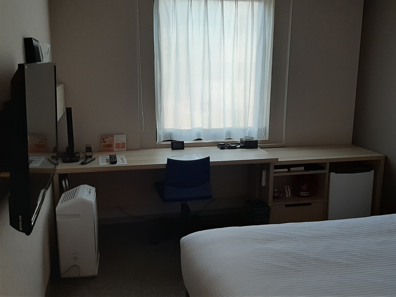 客室は広くはないもののビジネスホテルとしては十分で、かつ機能的。