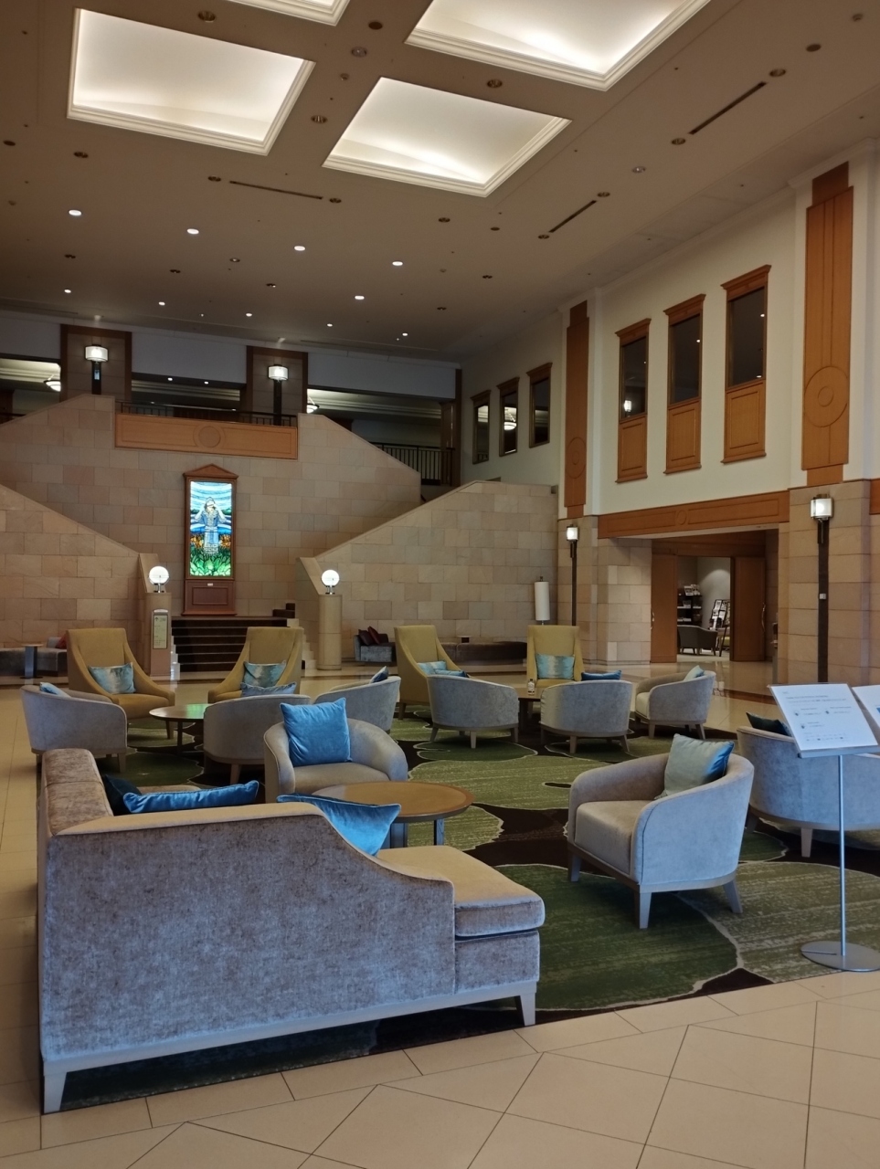 ホテルの外観はとてもシンプルで、一見なんの建物かわからないぐらいですが、中に入ると広いロビーが見渡せます。