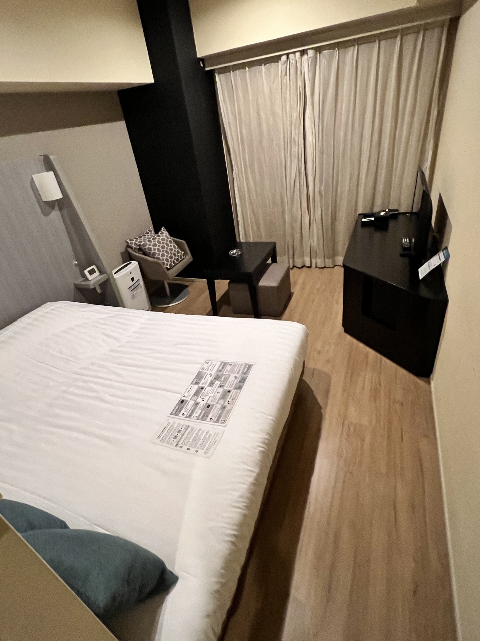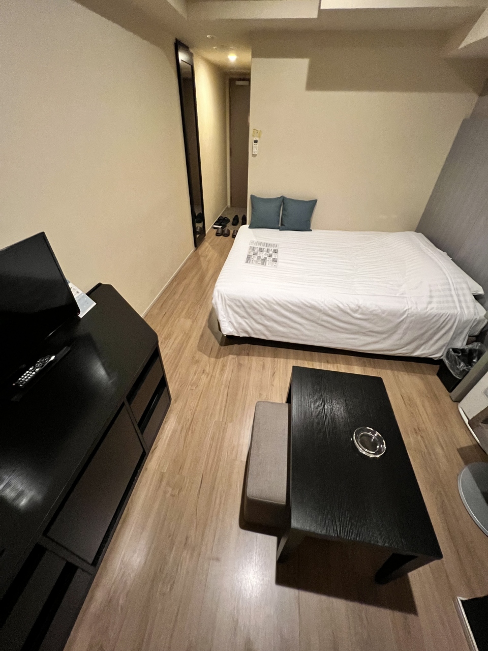部屋にデスクがない、代わりにミニソファとミニテーブルが。そのせいか広く感じます。
