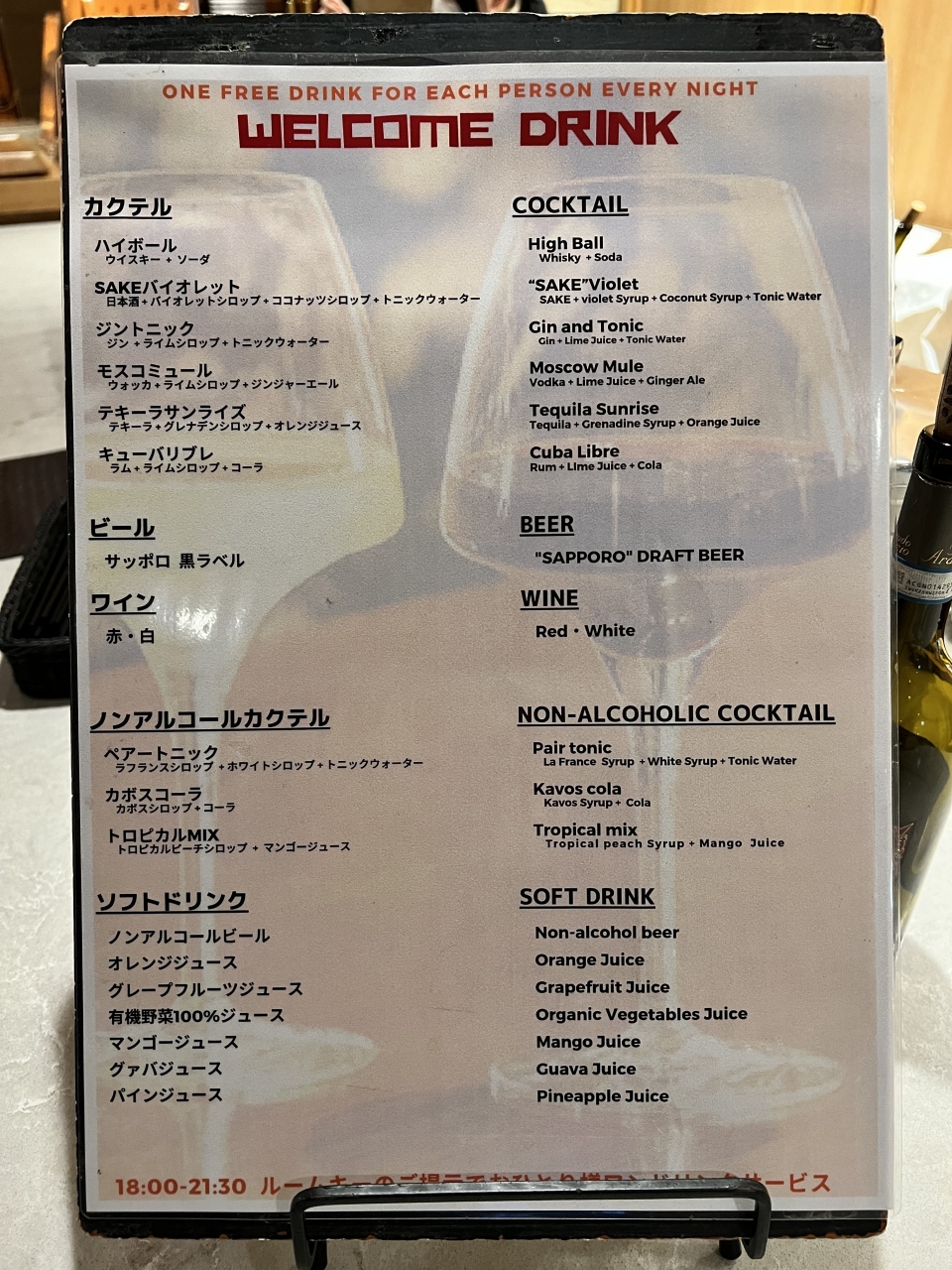 夕方から夜にかけて、1杯だけだがアルコールのサービスが。ロビーが広く落ち着く感じなので、読書をしながらまったりできました。