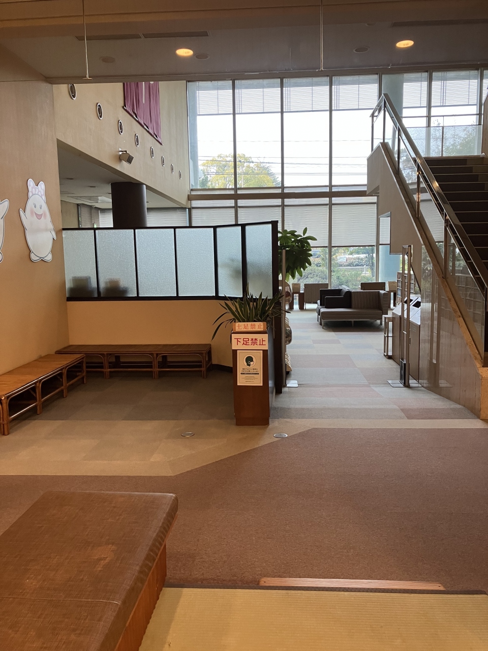 施設は古いですが、天然温泉が有るので部屋のユニットバスを使う必要が無く、温泉の洗面台にはクレンジングクリームや化粧水が置いてあったので、タオルだけで行けました。歩いて行ける場所に大きなスーパーが有ったので便利です。