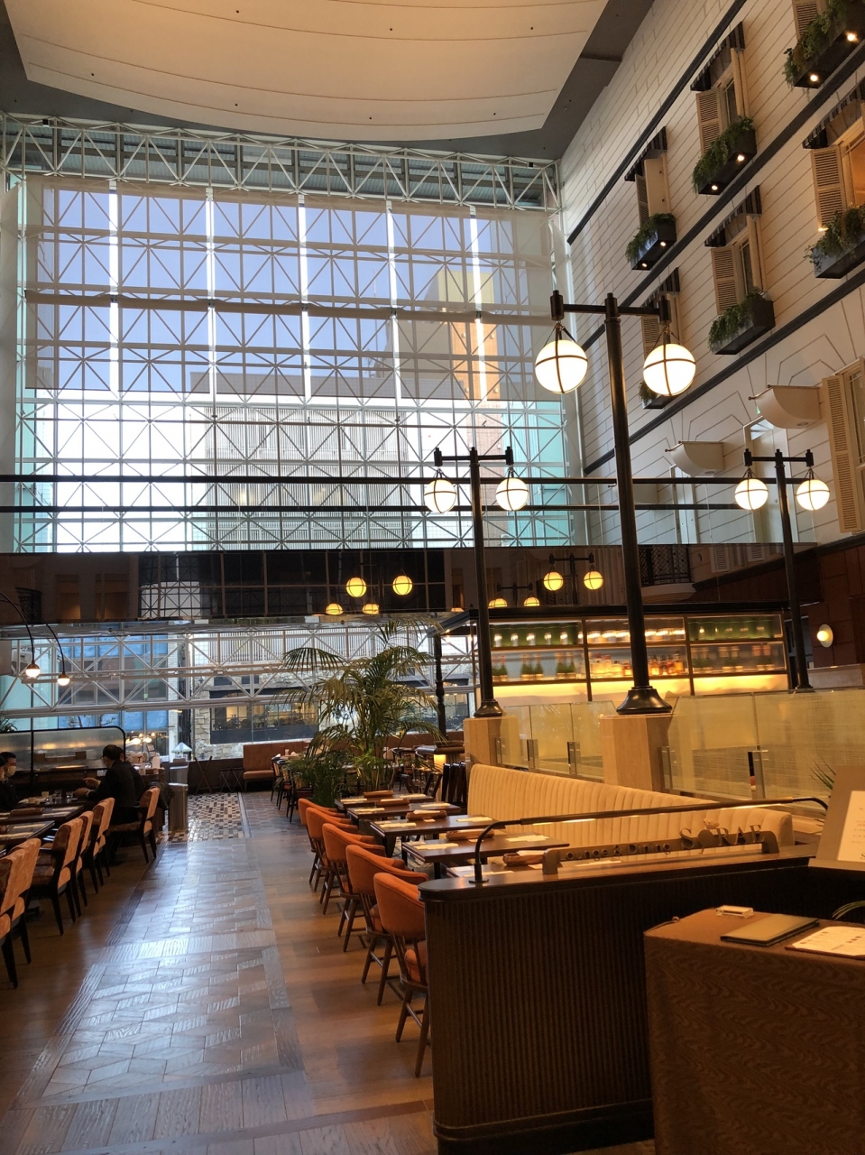 レストランは ホテルの吹き抜け部分にあり