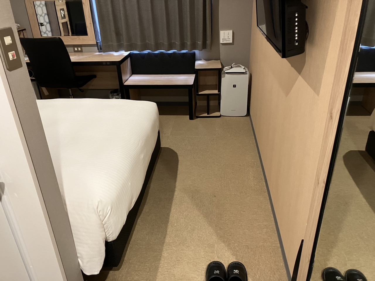 部屋は割とゆったり目で荷物置くスペースもありました。