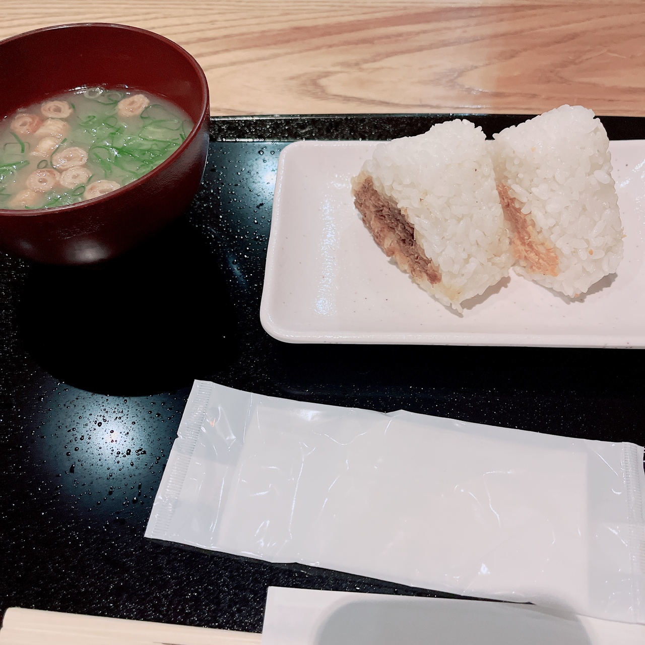 無料の朝食つきですが、おにぎり2ことお味噌。