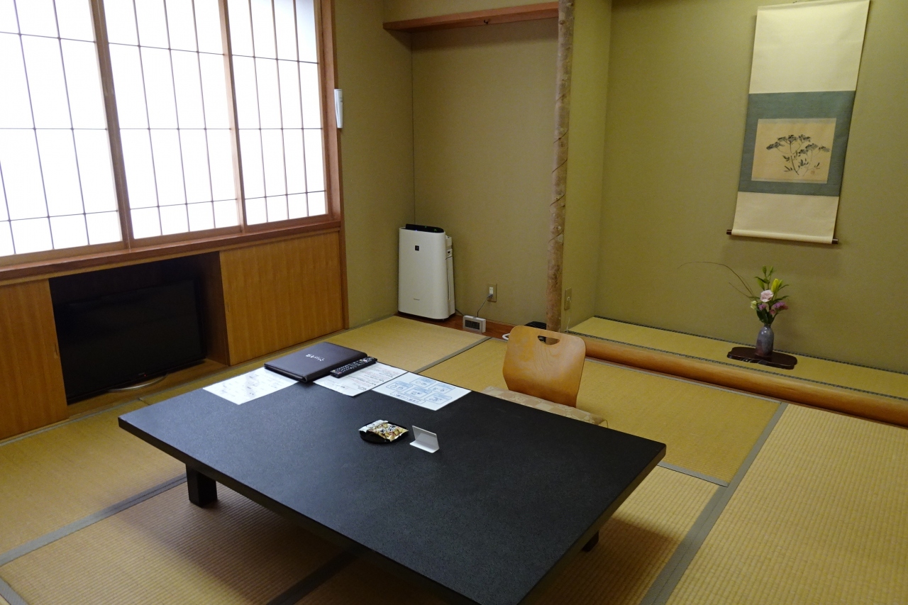 お部屋は清潔で、一人にはもったいないくらいの広さでした。サイズが色々な浴衣が常備されていました。