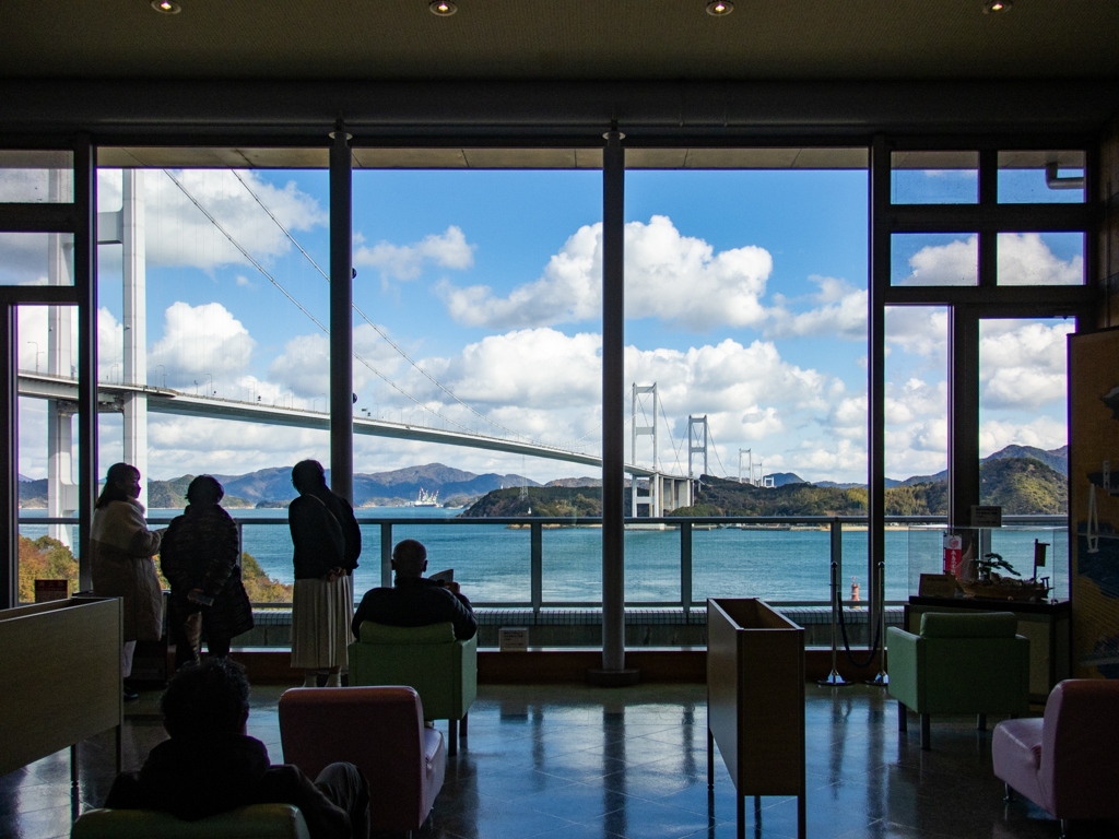 しまなみ海道の大きな橋がレストランから眺めることができます。大迫力!