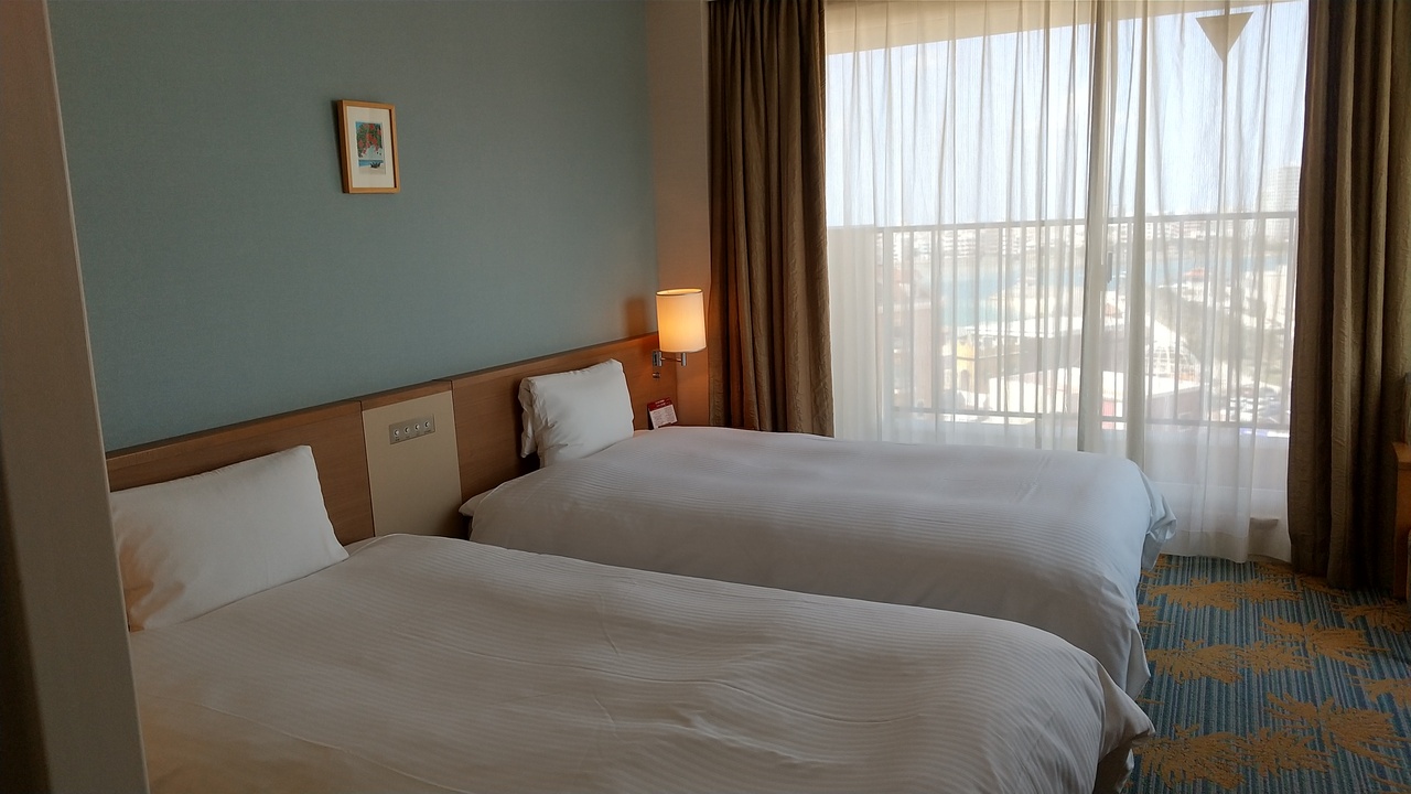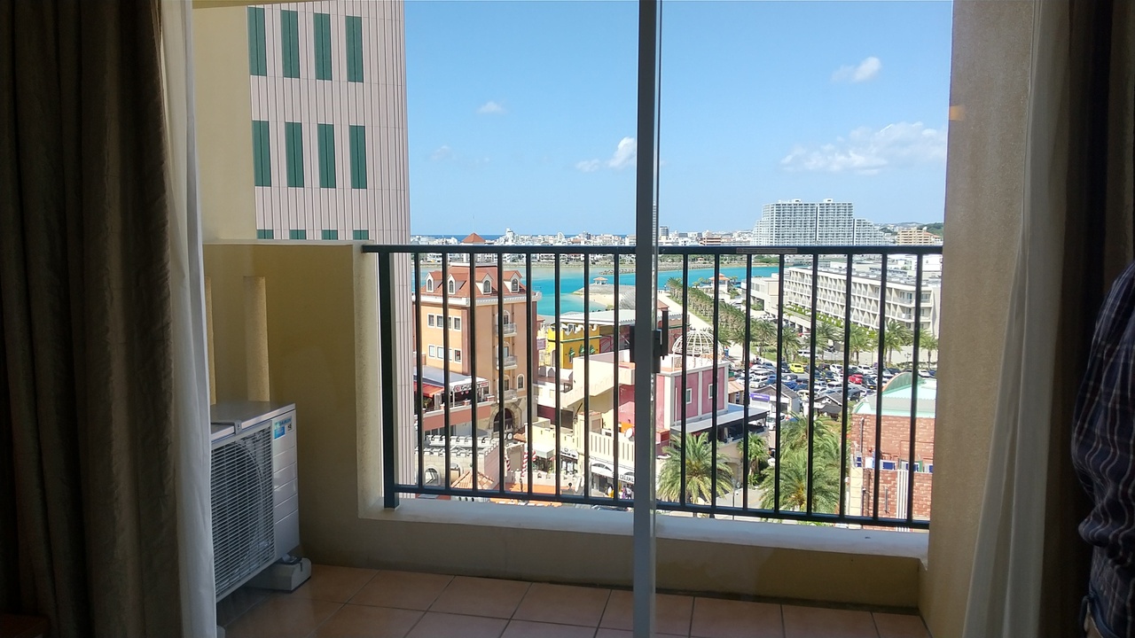 8階の角部屋からは街側とヒルトン周辺の海が眺められる部屋で快適。