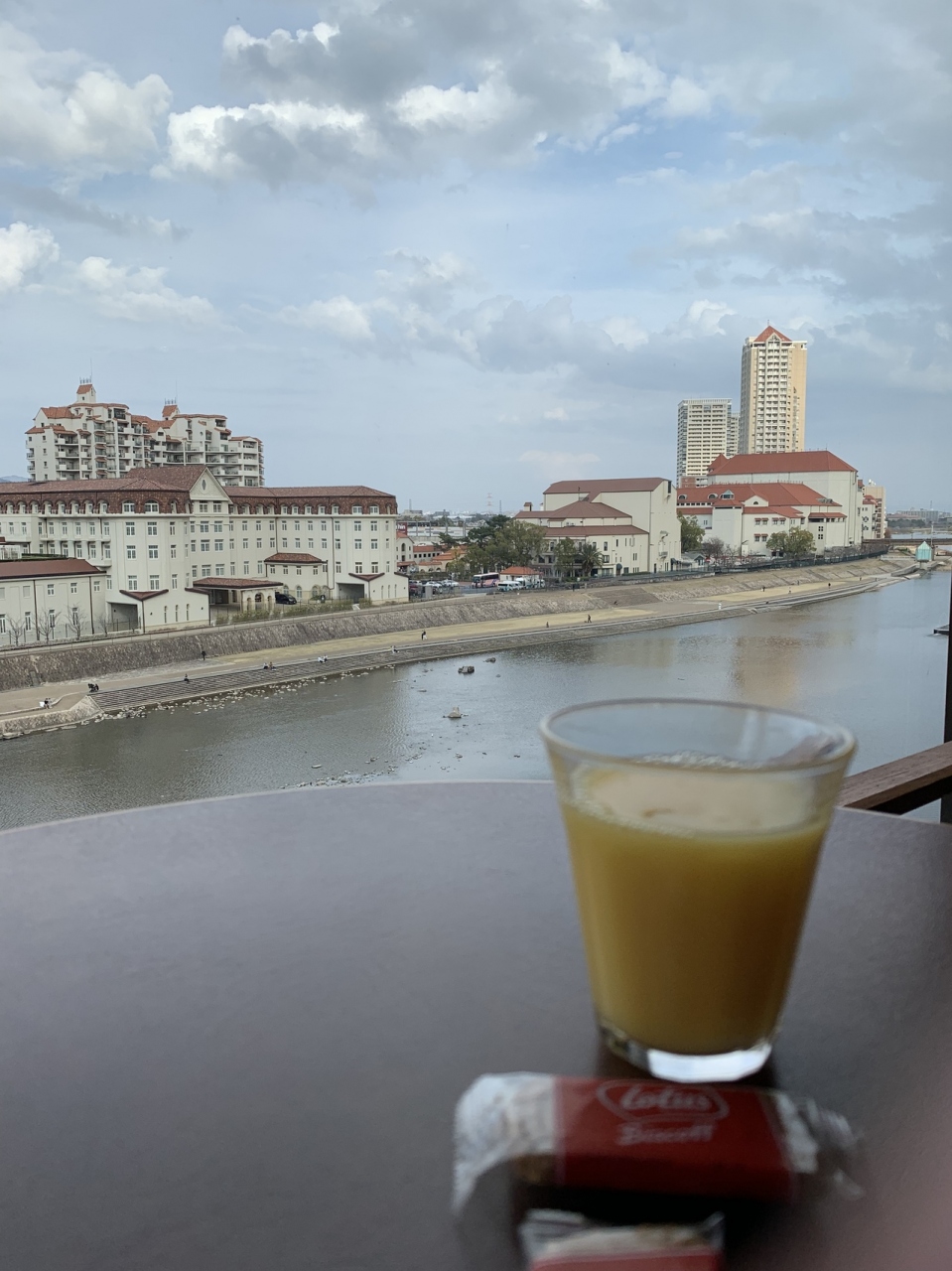 チェックイン後19:00までは、ラウンジでコーヒーやジュース、お菓子などもあり、武庫川を見ながらホッと出来ます。お風呂は最上階。宝塚温泉は少しぬるっとした泉質でとても良い温泉。次回は和室も良いかな。