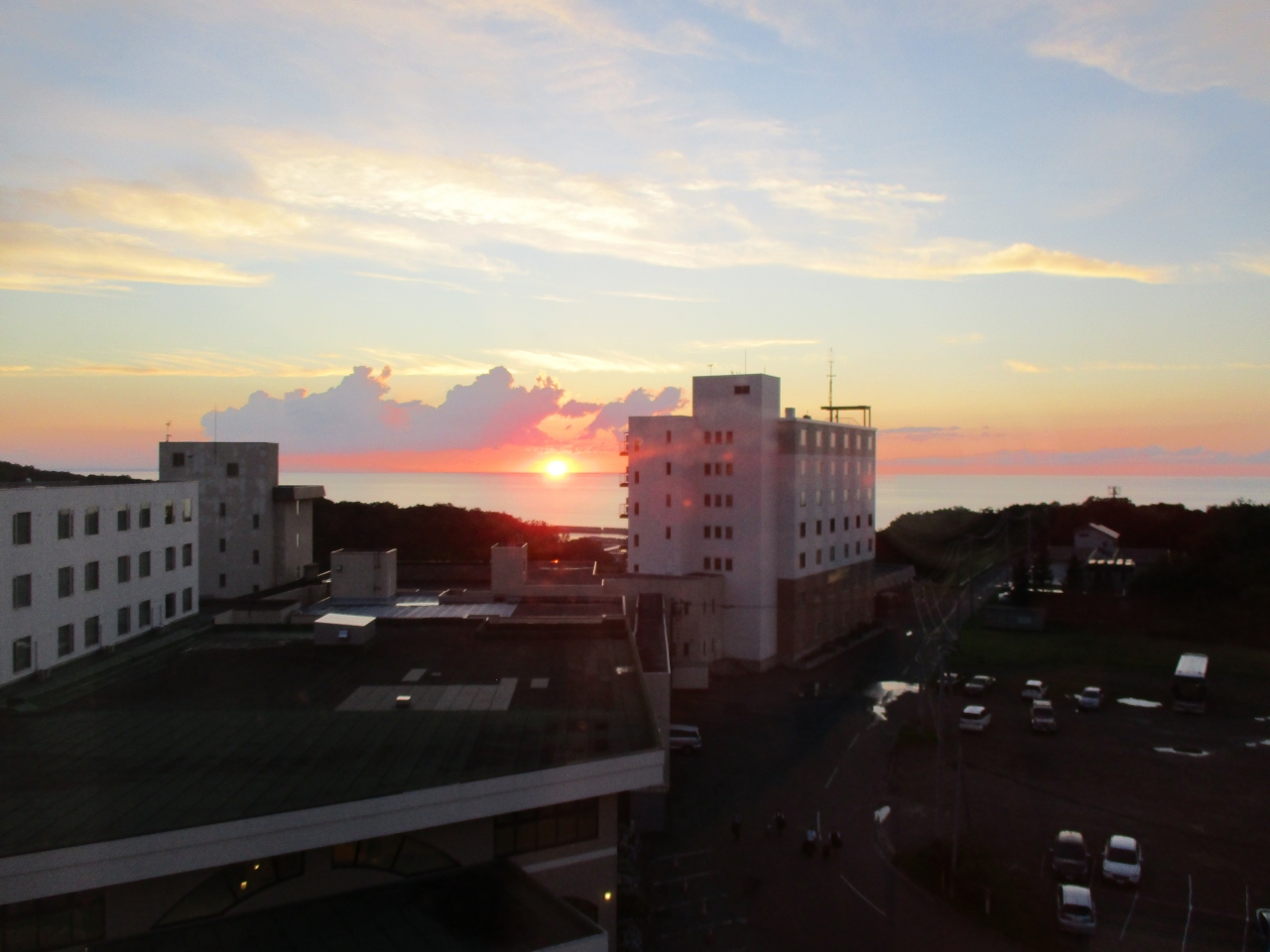 今回とまった部屋からは夕日がきれいに見ることができました。ちょうど夕日が海に沈む瞬間に立ち会うことができ、ラッキーでした。窓を開けてみたいところでしたが、虫の関係で窓は開けてはいけないとのことでした。