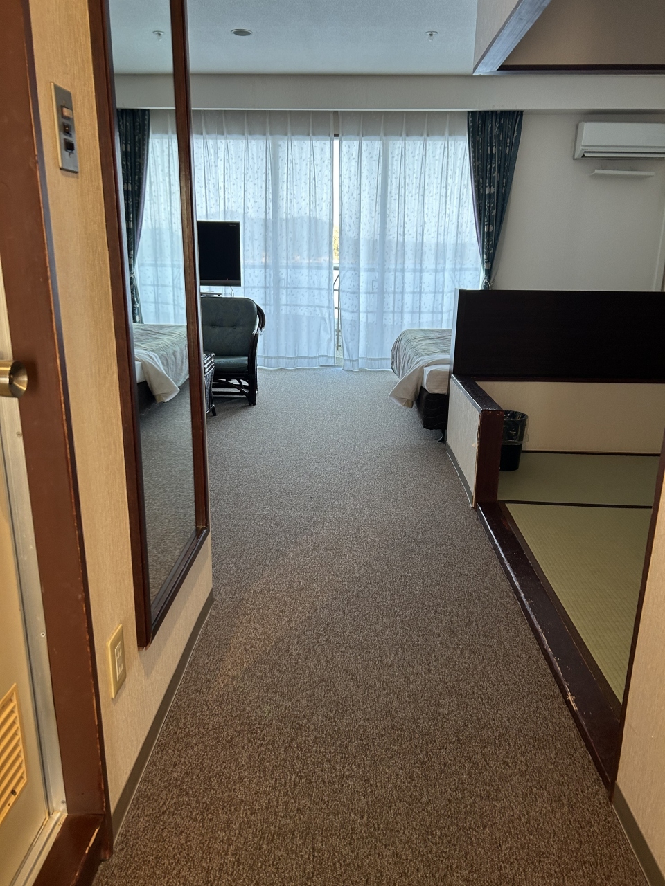 部屋は、古さを感じるつくりと内装ですが、35平米と広々、浜名湖が目の前に見えるのはよかったです。
