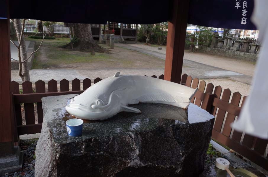 嬉野は土産物屋も無い町ですが、白ナマズ様を祭っている豊玉神社が目の前なので行ってみるとよいです。