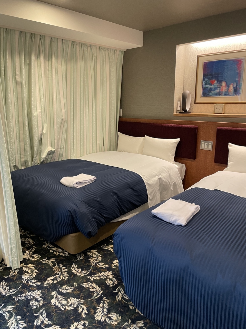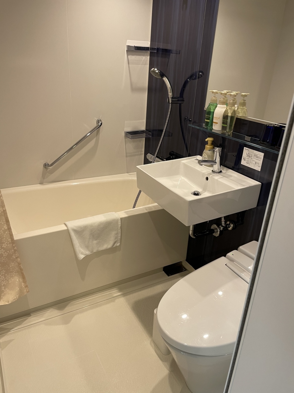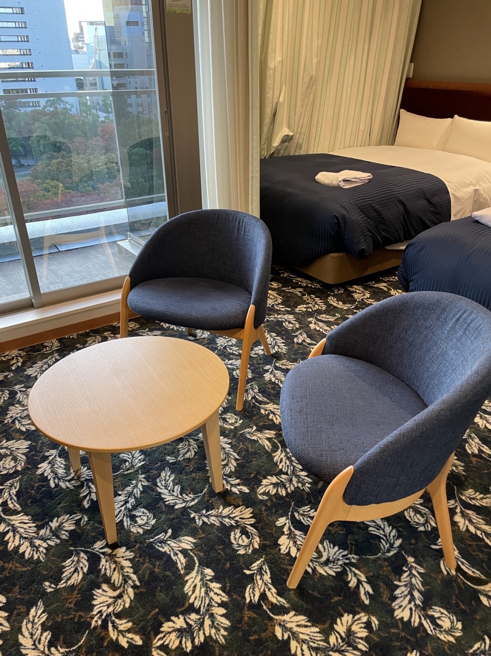 パークビューデラックスツインのお部屋に宿泊しました。広い上、バルコニーが付いています。11月で寒かったので、バルコニーにはほとんど出ませんでしたが、暖かい季節は気持ちが良いと思います。窓は広くて大きいのでお部屋全体が明るく開放感があります。お風呂はユニットバスですが、新しく綺麗です。ロビーには、セルフサービスのコーヒーマシーン、アメニティーバーがありどちらも無料です。地下鉄駅からも近く便利です。