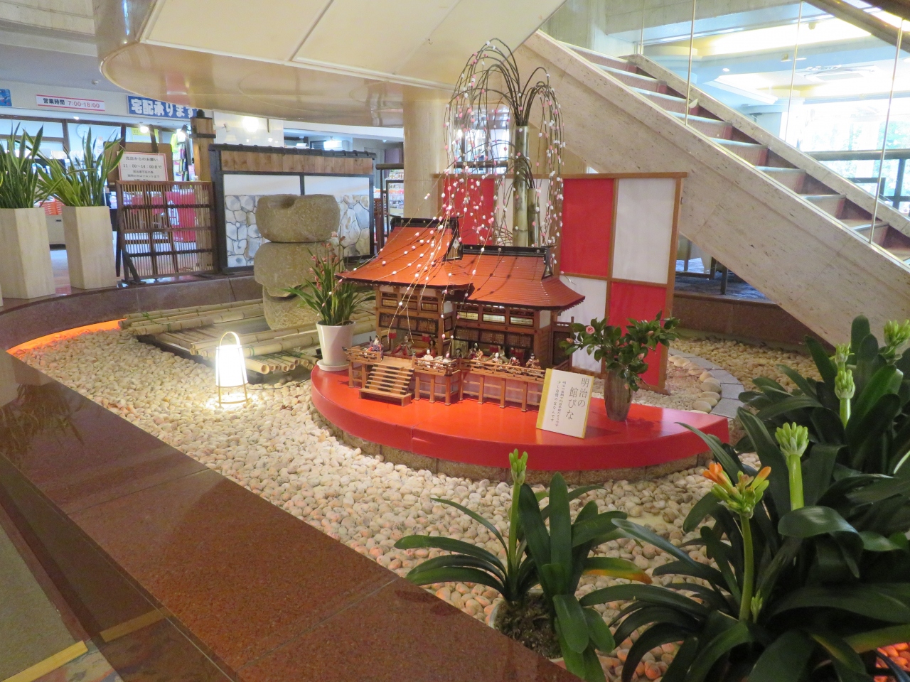 いったんホテルの玄関をくぐると、モダンな建物の外見とガラッと雰囲気が変わる。モダンとクラシックが調和し、癒しの空間を演出してくれている。出迎えてくれたお雛様は歴史を感じる見事なものでした。時節に見合った作りが用意されているので、温泉を味わう楽しさも加わり館内で過ごすのも楽しく退屈しない。懐かしい昭和の町並みと暮らしを再現した「昭和館」も目と鼻のところです。
