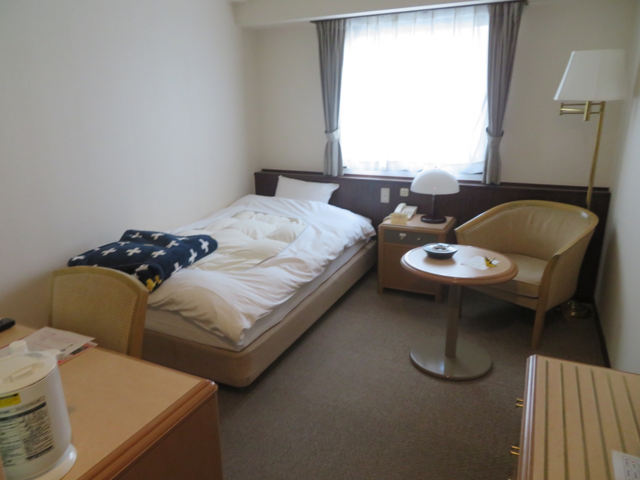 - 一人旅用の洋室なので、狭いが・・・。