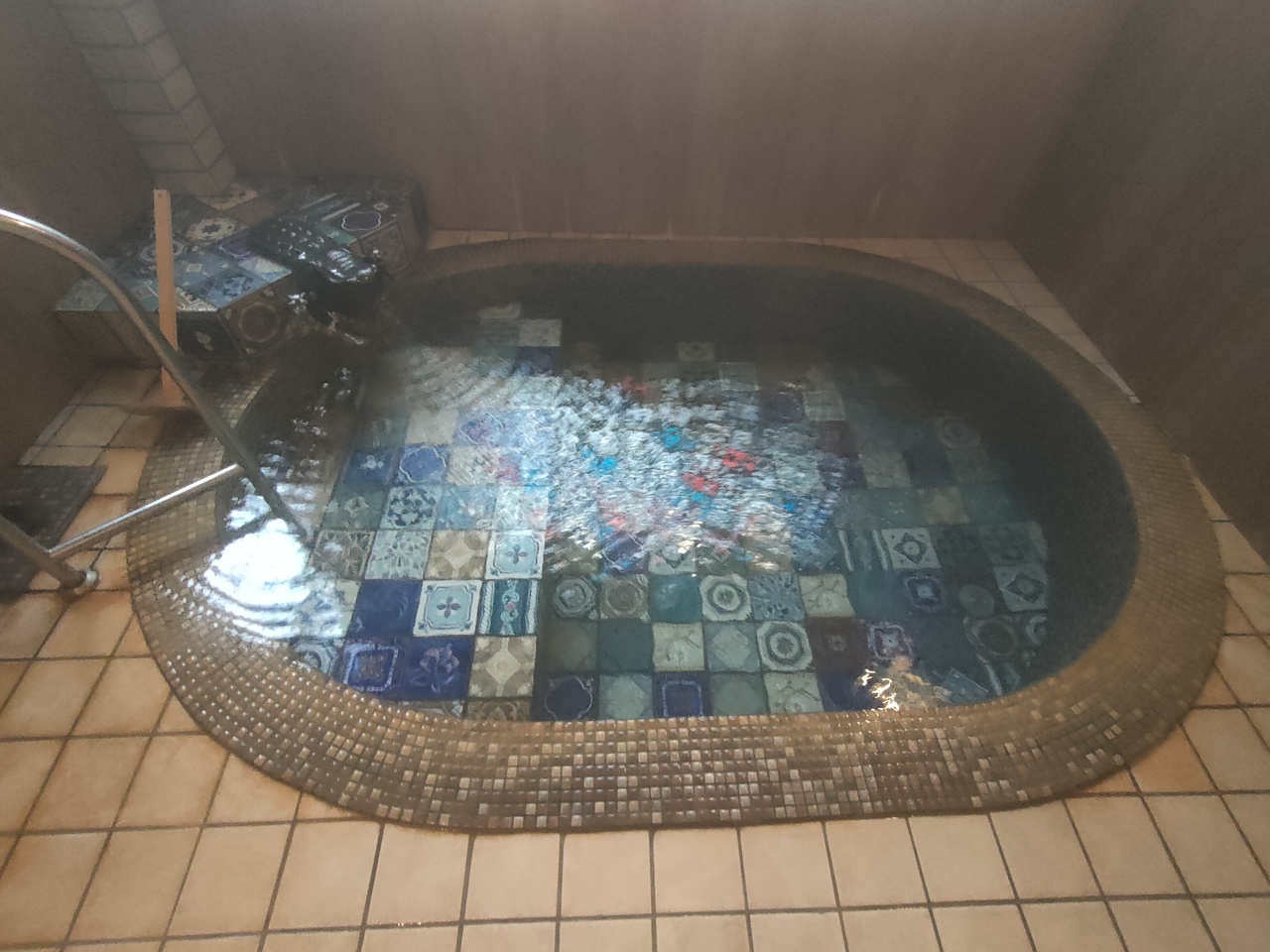 レトロなタイル貼りの浴槽は、熱めのお湯が出ていて、無色透明ながら、よく温まります。