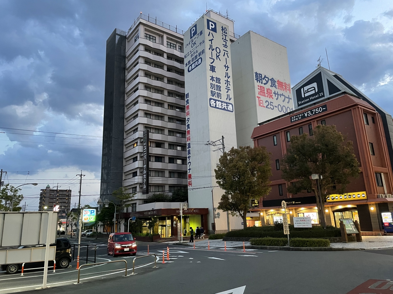松江駅南口の目の前にある老舗の大きなホテルで駅アクセスは超便利、施設はかなり古いが部屋は十分広く、ただしWIFIが部屋では未接続、今どきのビジネスホテルでは珍しい。その分を補うかのように朝食と夕食までもが無料サービスとなっていて周辺のホテルと同様かそれ以下の料金体系です、食べて寝るだけなら十分コスパがいい。